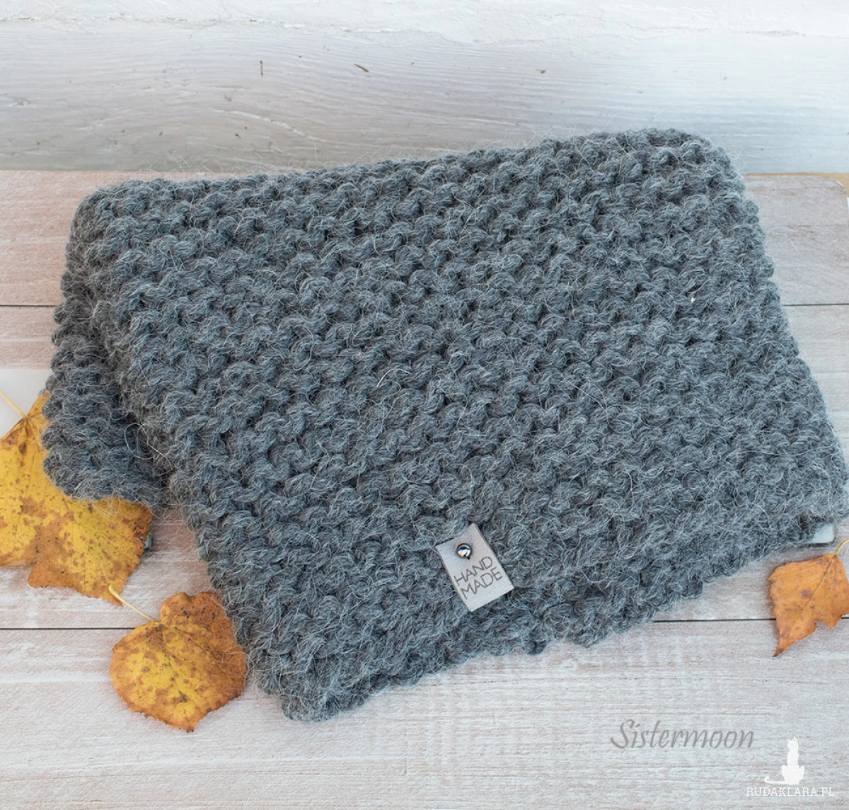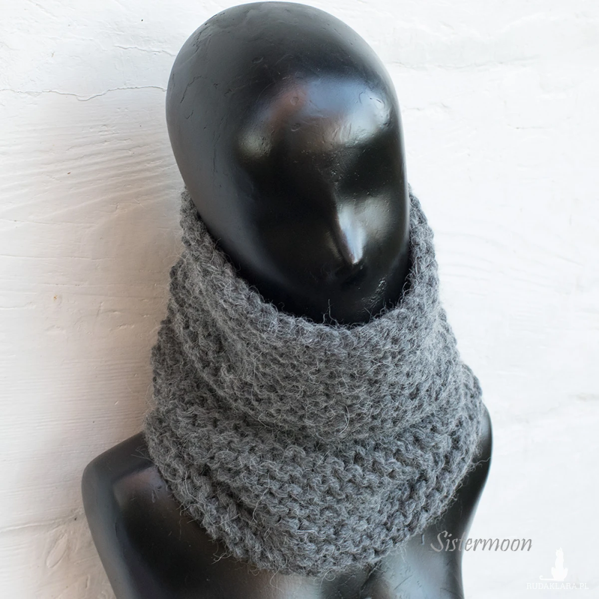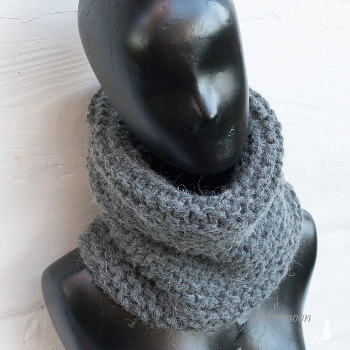 Ciepły komin tuba z alpaki w kolorze grafitowym (ciemny szary). Wykonany ręcznie z wysokiej jakości grubej włóczki, mieszanki alpaki, wełny i akrylu. Włóczka z dobrym skrętem, miła i miękka w dotyku, z delikatnym włoskiem. Wzór francuski, mięsisty, lepiej ogrzewa, jest bardzo elastyczny.
