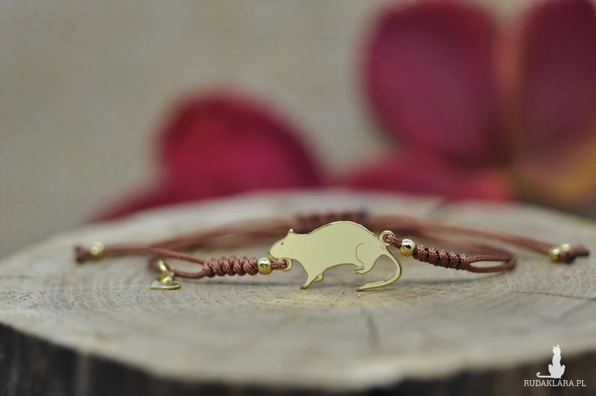 Szczurek ze srebrnej blachy próby 925, wymiary: 25,1 x 15,2 mm, grubość 0,8 mm oraz srebrne dodatki.