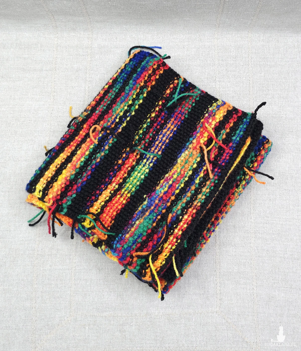 Ten wyjątkowy szal to nie tylko piękny dodatek, ale i manifest filozofii Zero Waste – stworzony w całości z kolorowych resztek włóczek, które w innym wypadku mogłyby się zmarnować.