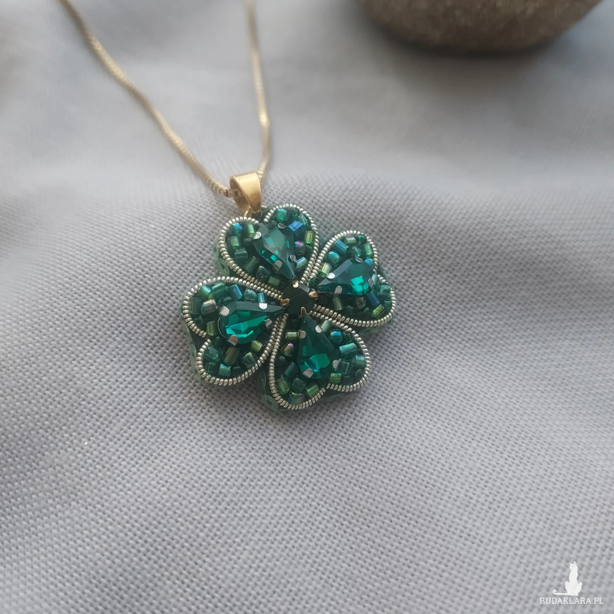Wisior powstał techniką haftu koralikowego, gdzie każdy najdrobniejszy koralik został przyszyty z pasją!