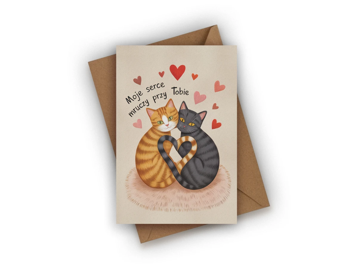 Kartka miłosna- Moje serce mruczy przy Tobie