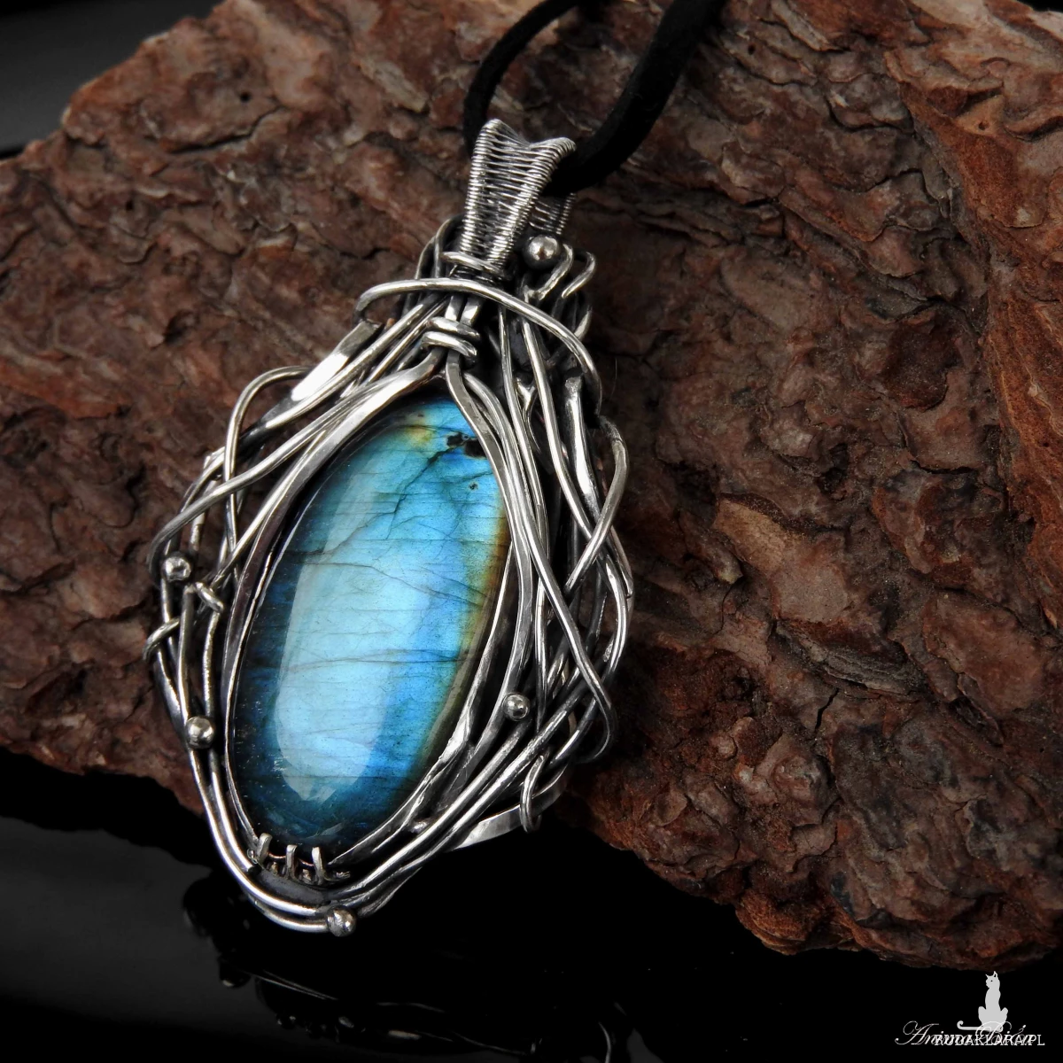 Wisiorek srebrny z niebieskim labradorytem. Wykonany od