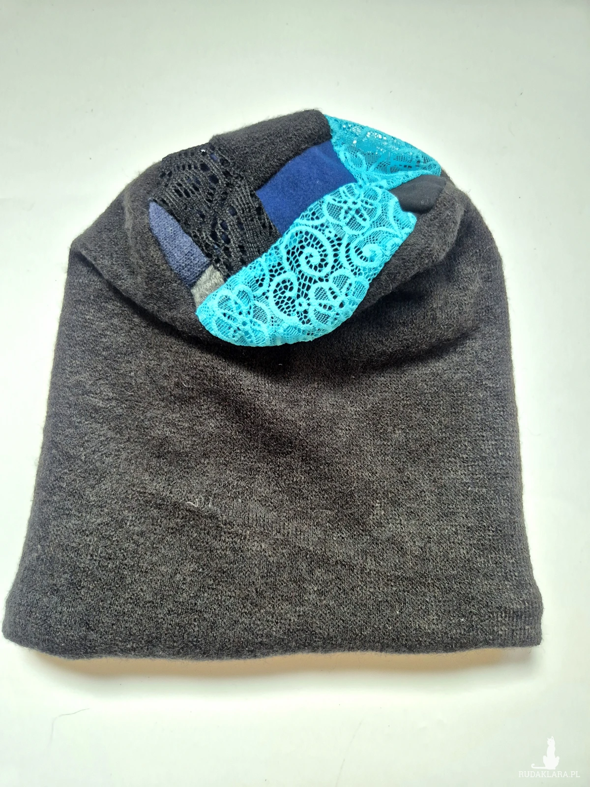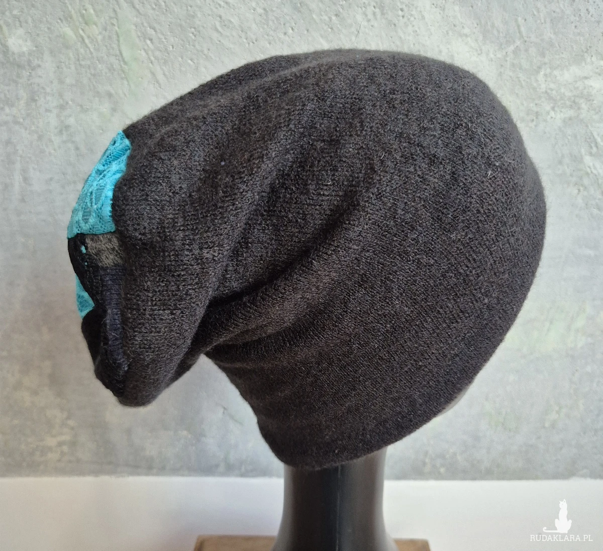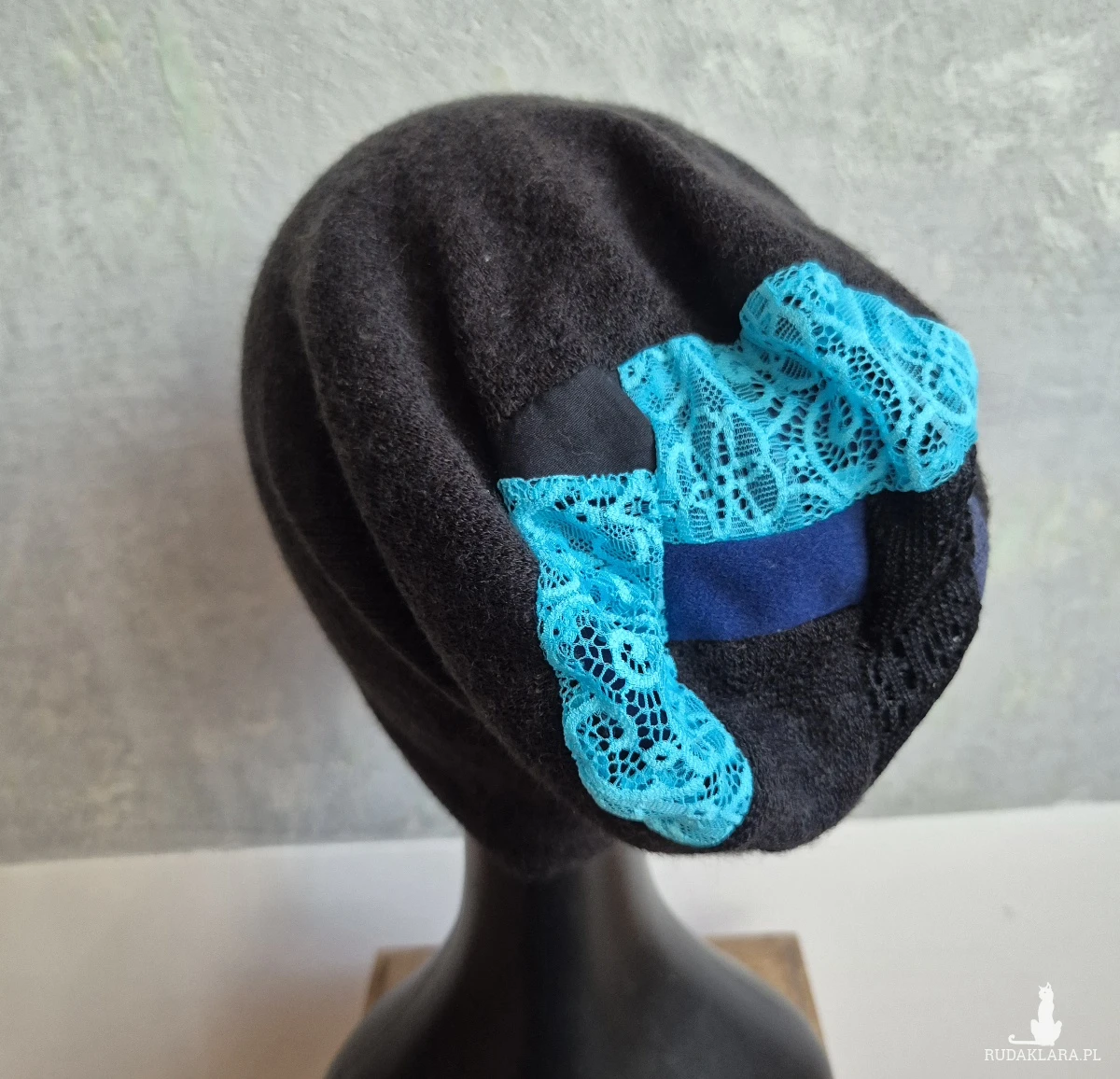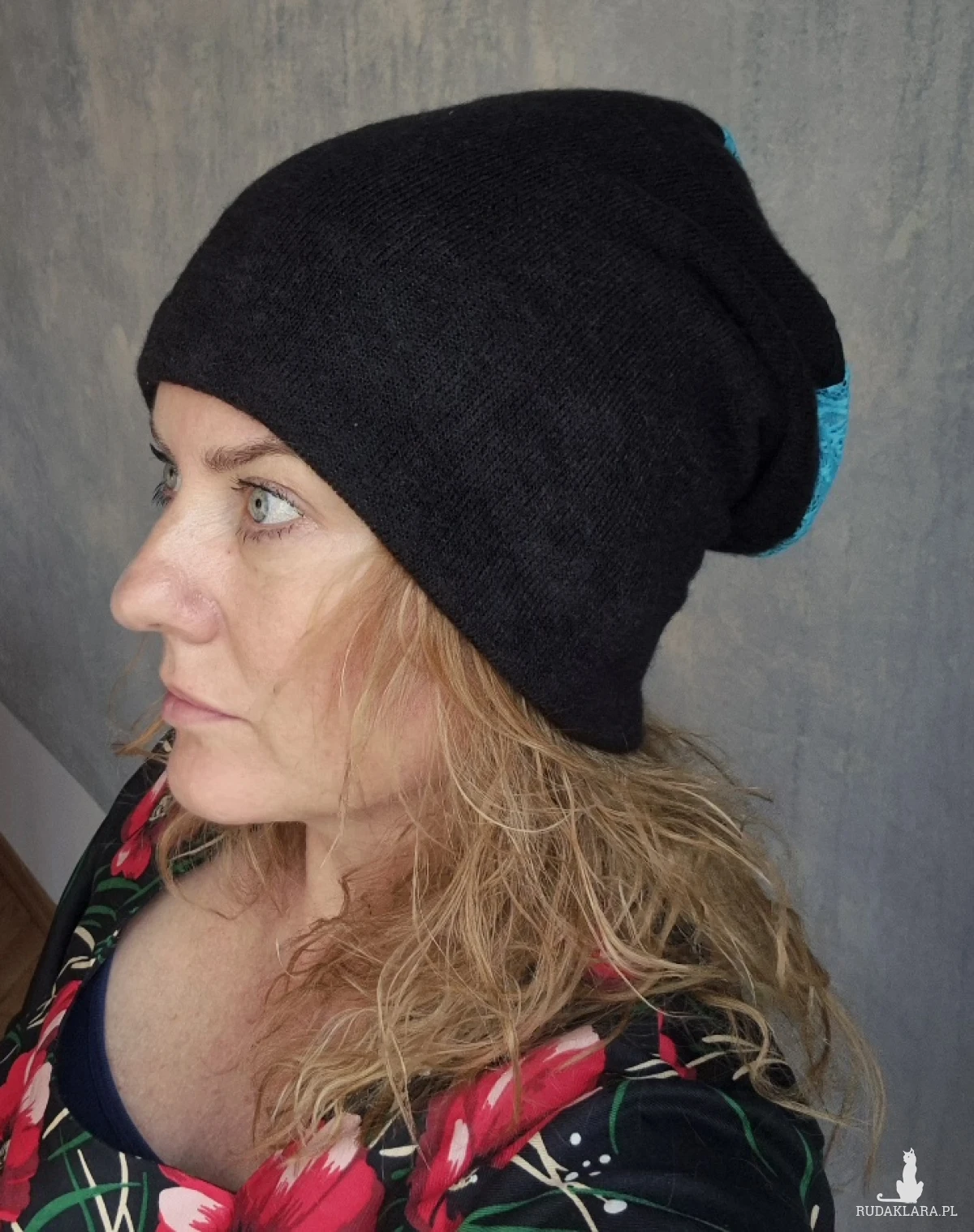 Czapka czarna Smerfetka na podszewce rozmiar uniwersalny ciepła i miła wykonana w pojedynczym egzemplarzu rękodzieło polecam boks A1