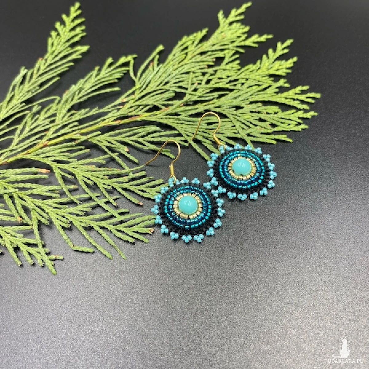 Kolory kolczyków: turkusowy, czarny, złoty, morski.