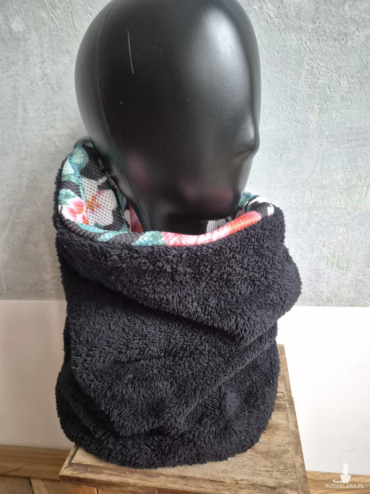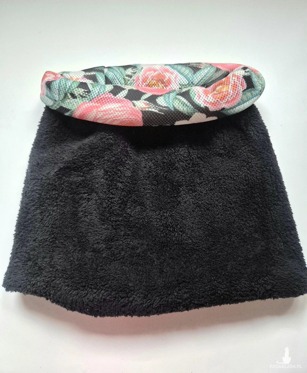 komin tuba ciepły czarny baranek na kolorowej podszewce rozmiar uniwersalny zakładany przez głowę pojedyncze egzemplarz rękodzieło polecam Box P1