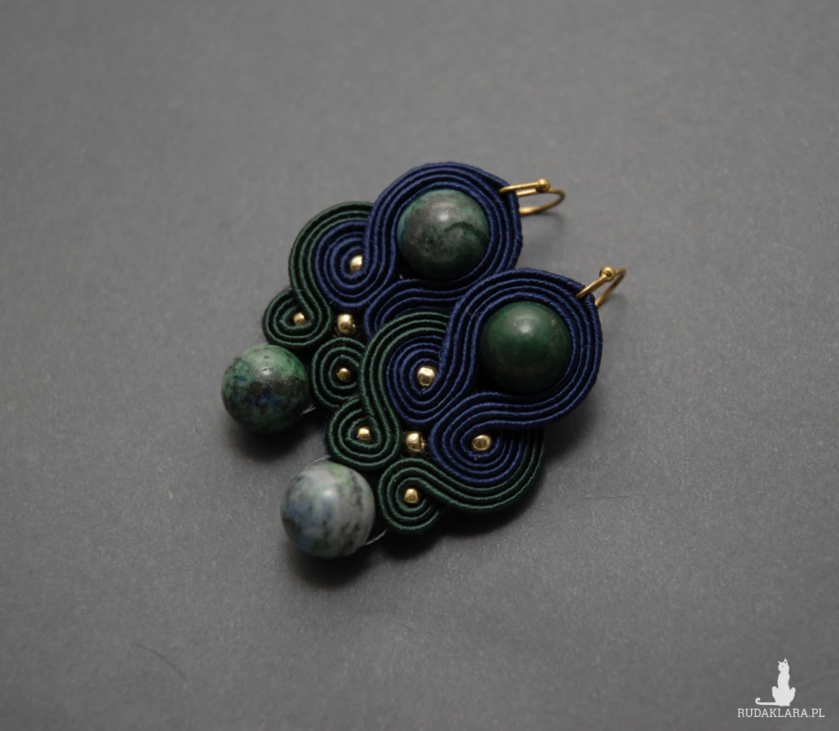 oferuję kolczyki lub klipsy zrobione techniką sutasz, ozdobione chryzokolą i drobnymi koralikami