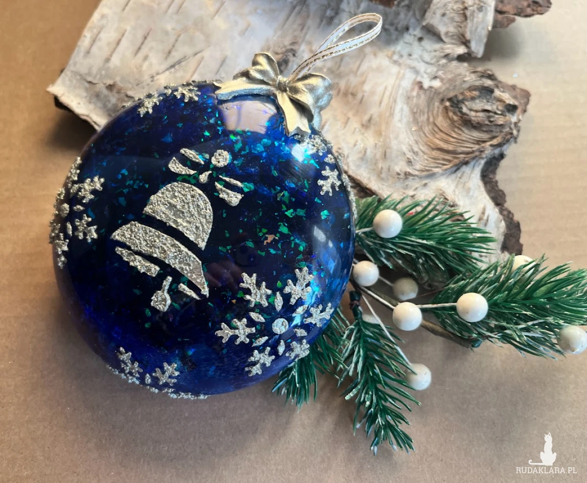 Oryginalne i bardzo efektowna bombka-medalion w imitacji niebieskiej miki .Wykonane na medalionie akrylowym o śr. 11 cm. Przyozdobione elementami sztukaterii w kolorze starej patyny. To propozycja dla osób, które lubią nietypowe ozdoby świąteczne. Wykonana jest w technice mixmedia, która pozwala na uzyskanie naprawdę ciekawych efektów dekoracyjnych. Bombkę możesz wykorzystać do powieszenia w oknie. Dobrze będzie prezentować się ona również na wigilijnym stole.. W tej postaci produkt gotowy do natychmiastowej wysyłki.
