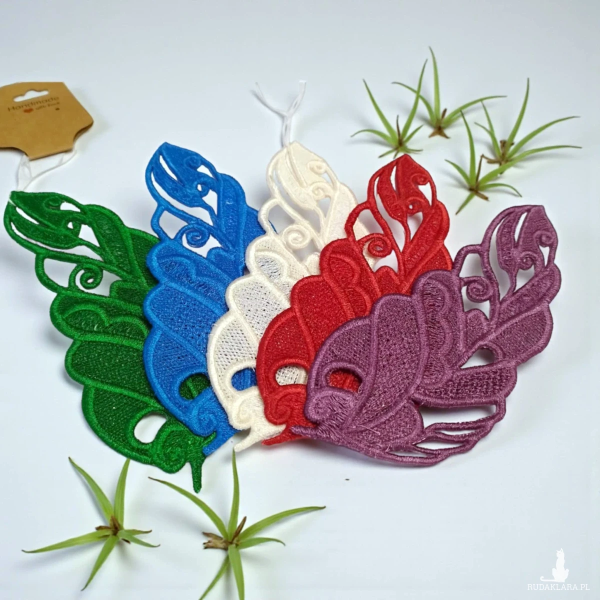 Oryginalna, haftowana zakładka do książek w kształcie pióra. Zakładka jest jedyna w swoim rodzaju. Jest bardzo lekka, doskonale trzyma kształt i jest sztywna.