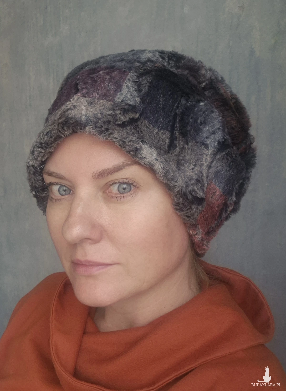 Ciepla  futrzana odcienie szarosci bardzo miła na podszewce,czapka dla artystki, rozmiar uniwersalny, nie zginiesz w tłumie  , box d1 i t1
