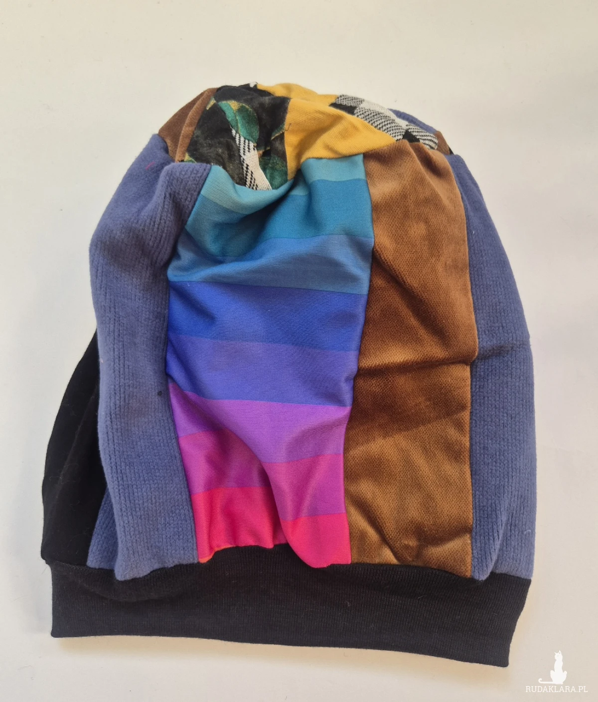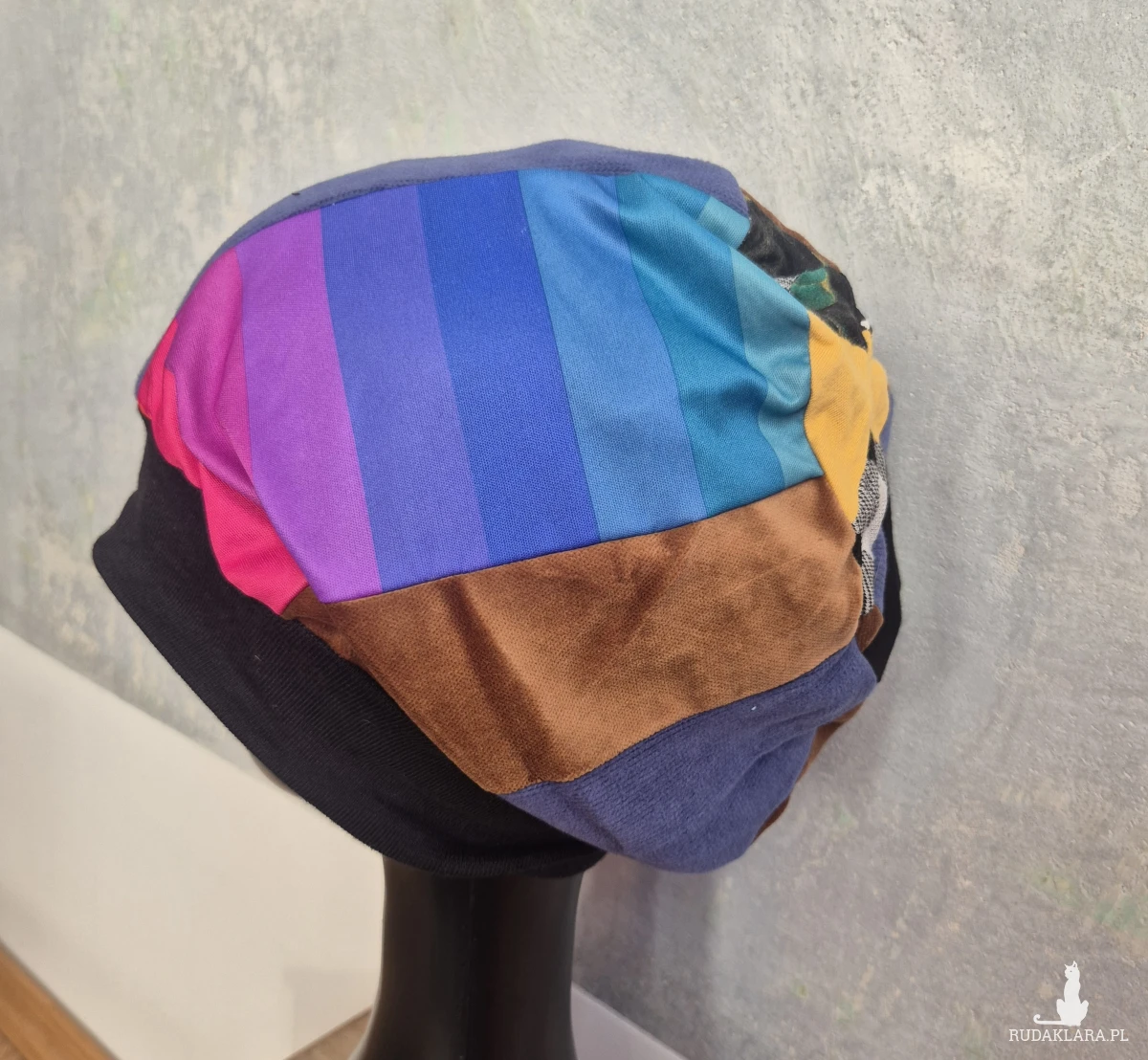 Czapka damska patchworkowa na podszewce rozmiar uniwersalna z motywem tęczy świetna doskonała na codzienne noszenie polecam Box T1