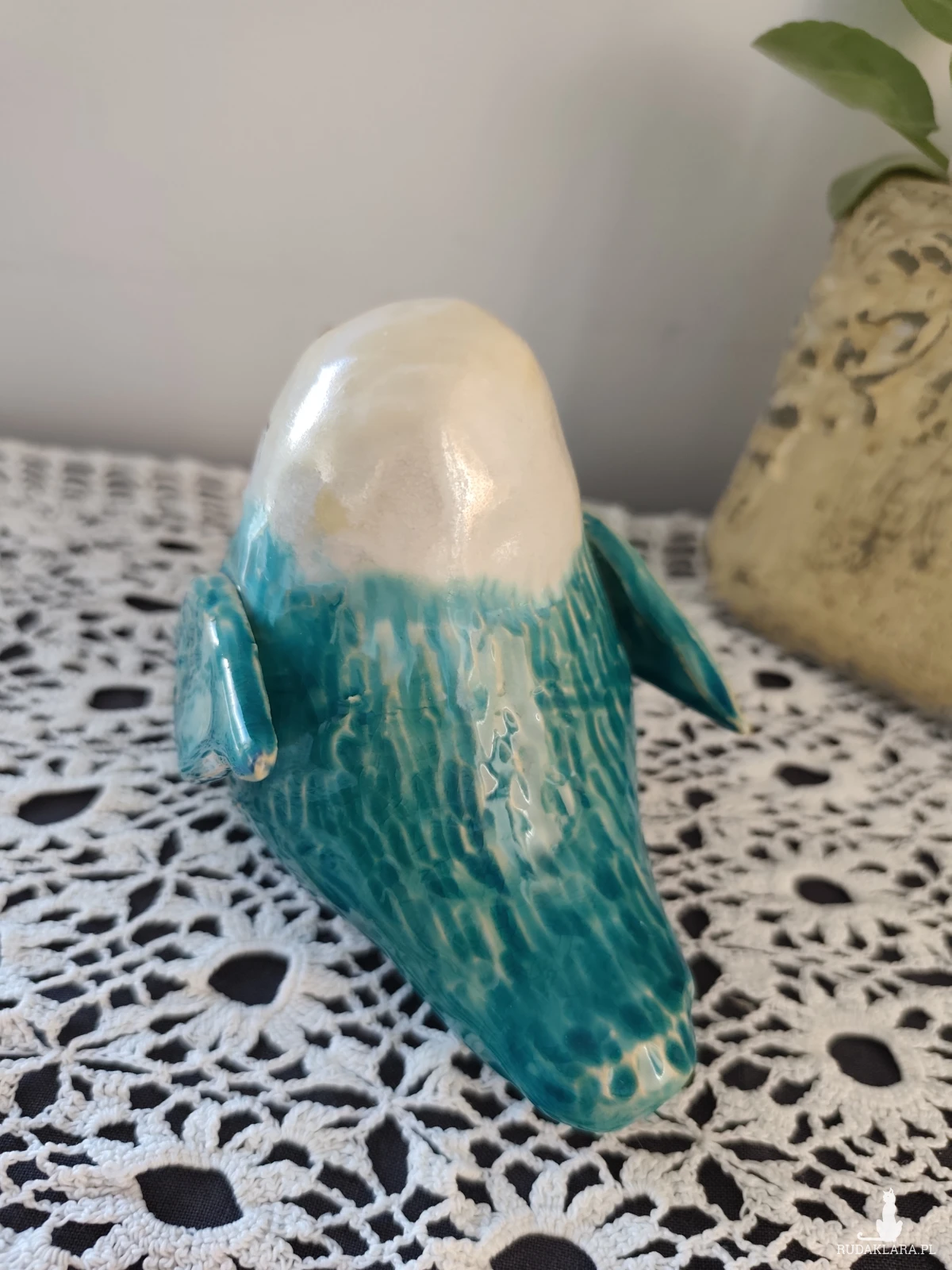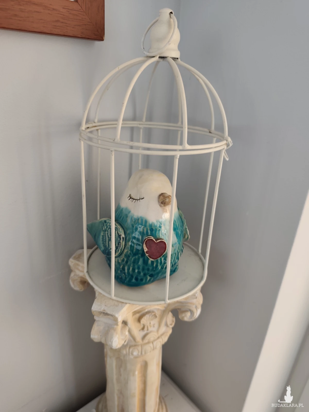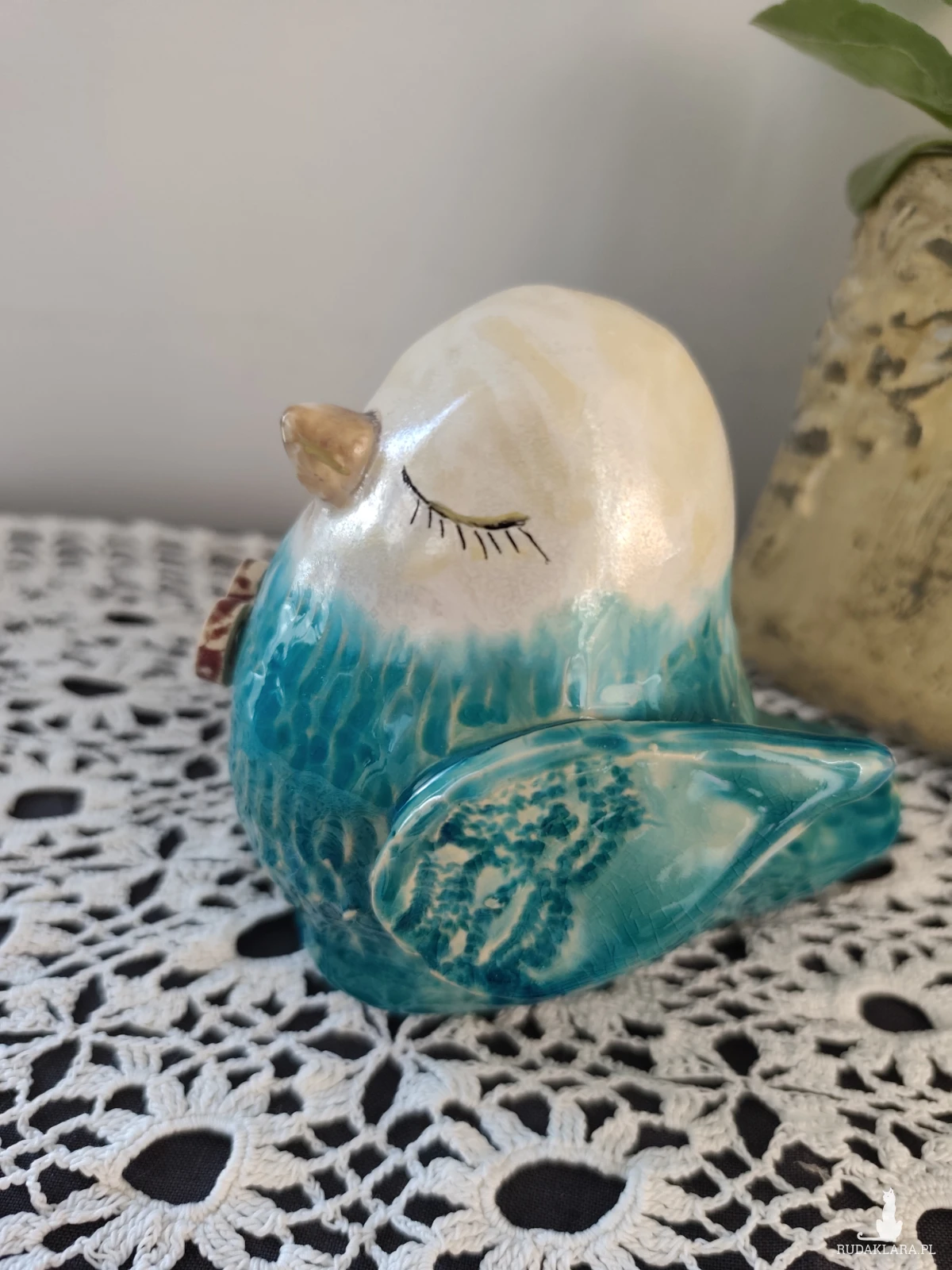 Ceramiczny zakochany wróbel, wykonany ręcznie, szkliwiony i dwukrotnie wypalany w piecu ceramicznym na wysoką temperaturę. Wielkość około 13 cm. Grubość w pasie nieokreślona 😉