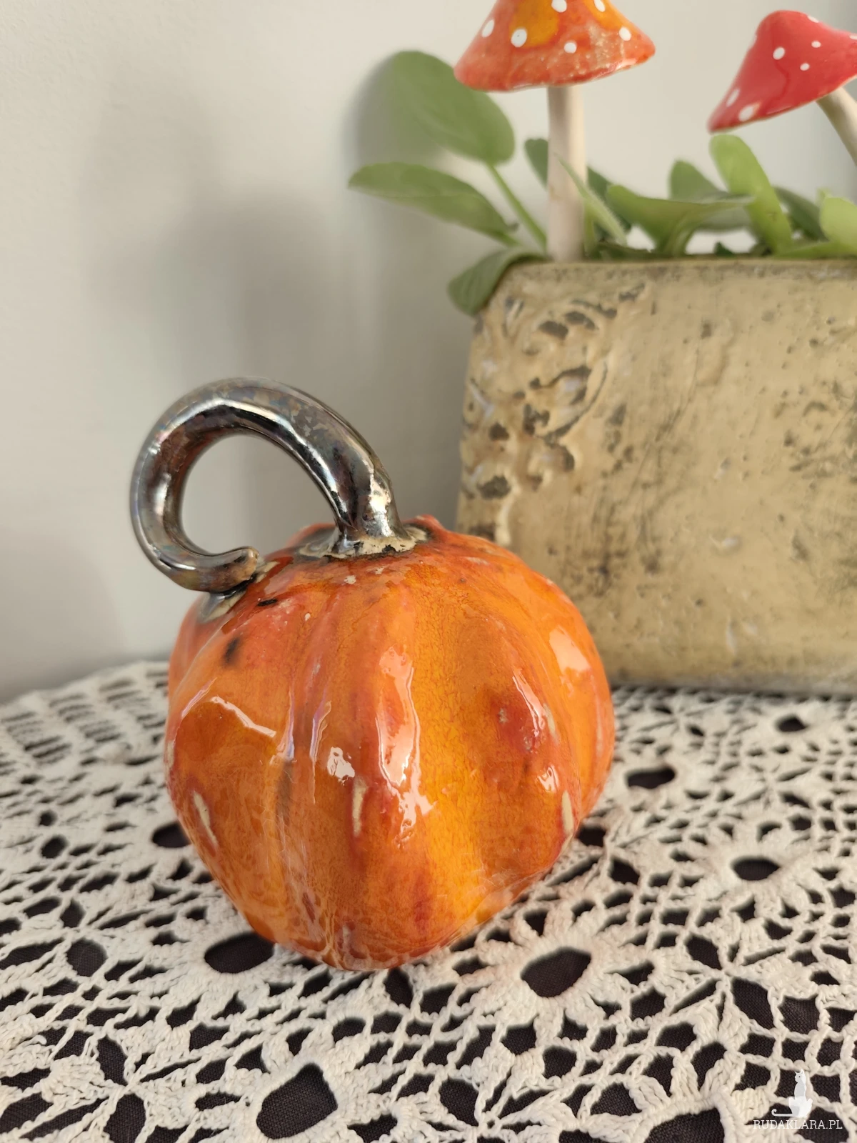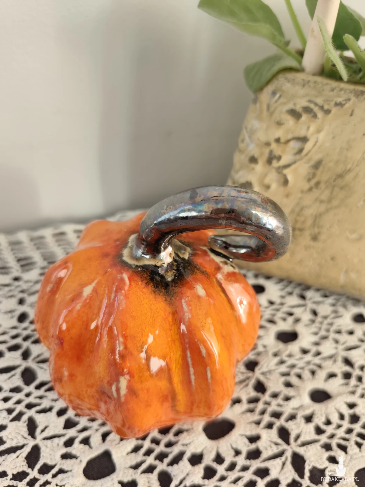 Przepiękna dynia ceramiczna, wielkość z ogonkiem 12 cm .