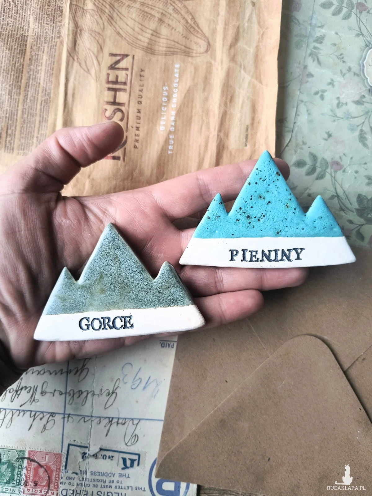 Magnesy w postaci szczytów dla miłośników górskich wędrówek. Wymiary ok 5, 5 cm x 7,5 cm. Polecam serdecznie.