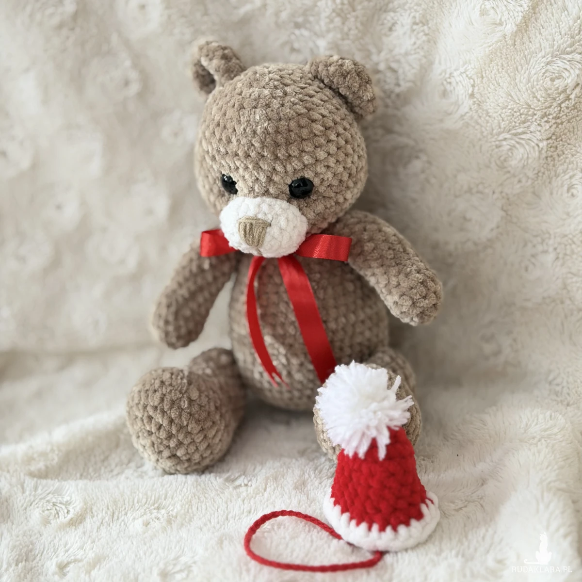Miś ma elegancką czerwoną kokardkę, a do kompletu dodaję także małą czapeczkę , którą możesz zakładać i zdejmować kiedy tylko chcesz. 💕