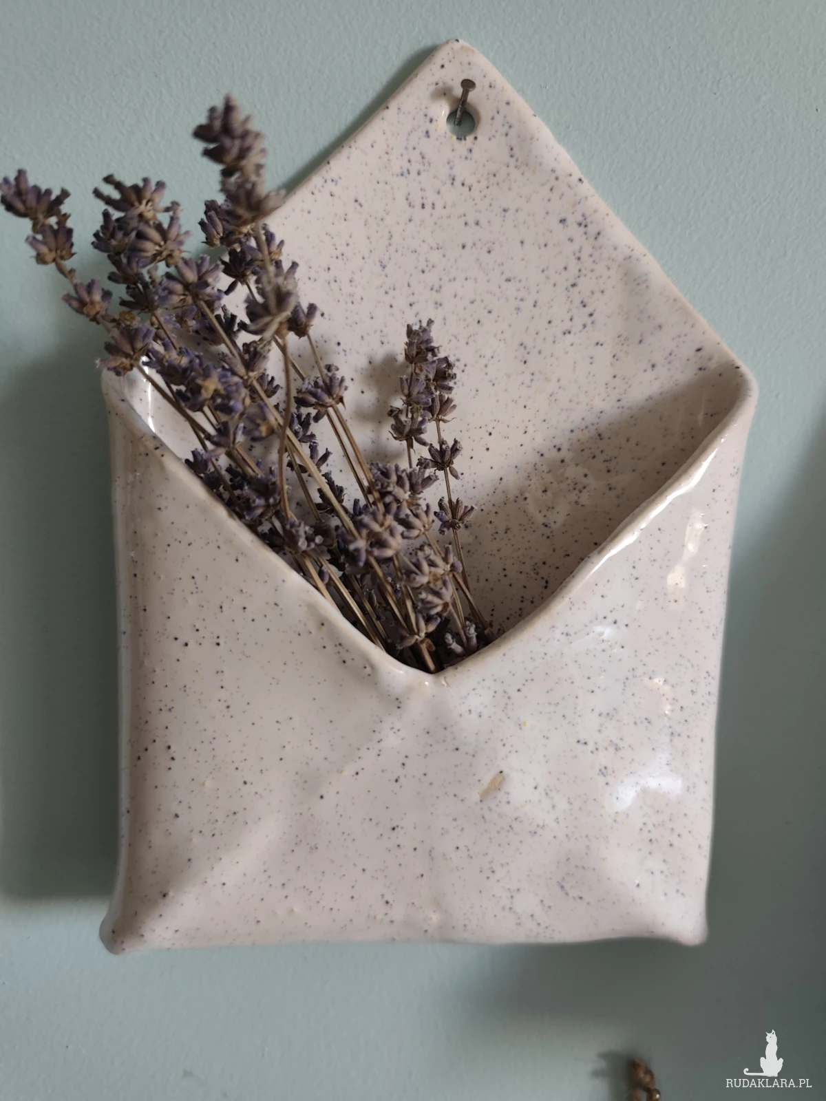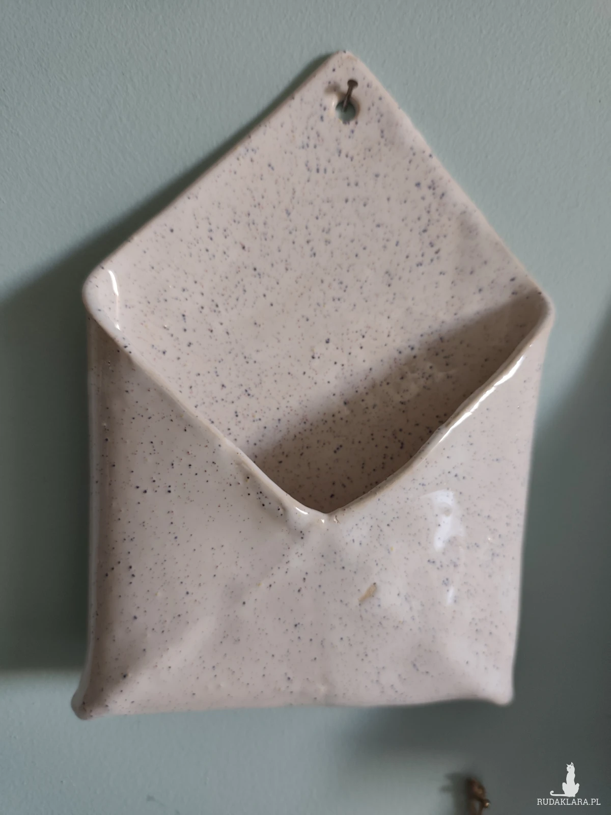 Ceramiczna koperta na drobiazgi, szkliwiona i dwukrotnie wypalana w piecu ceramicznym na wysoką temperaturę. Wymiary 21x15 cm.