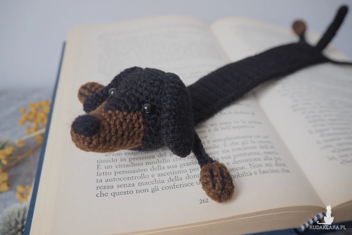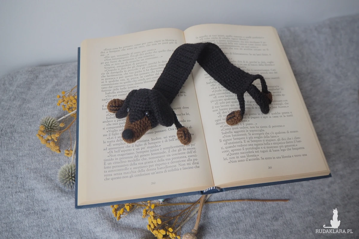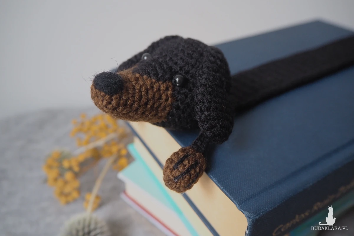 Zakładka do książki z sympatycznym pieskiem wykonana z włóczki na szydełku.
