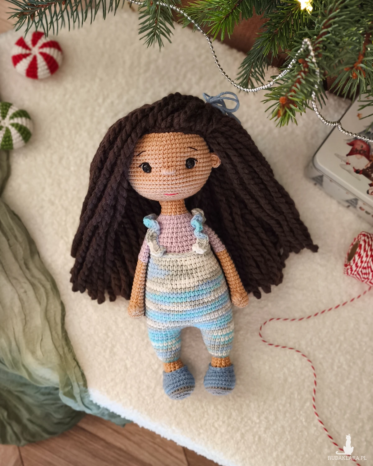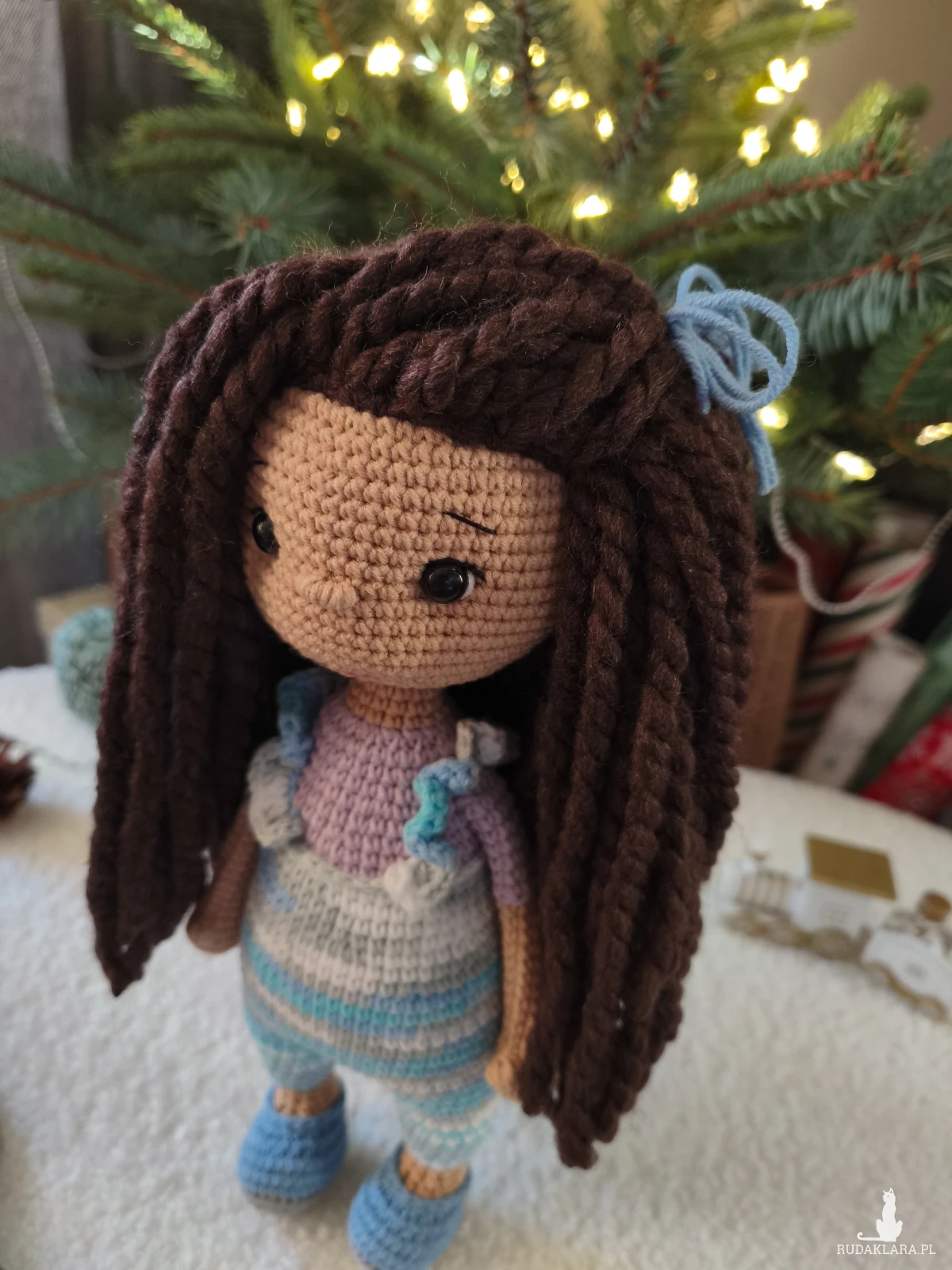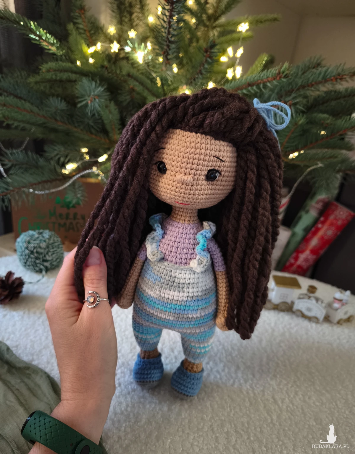 W przypadku alergii na wełnę mogę wykonać wersję z włosami wyszydełkowanymi z włóczki półbawełnianej — na indywidualne zamówienie.