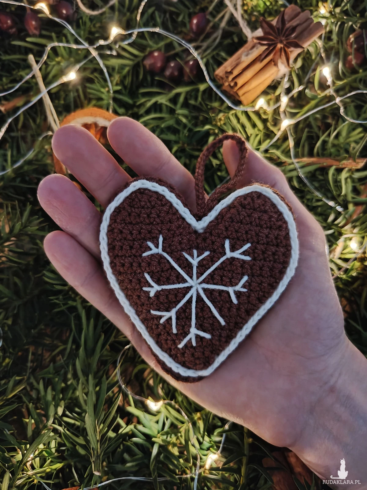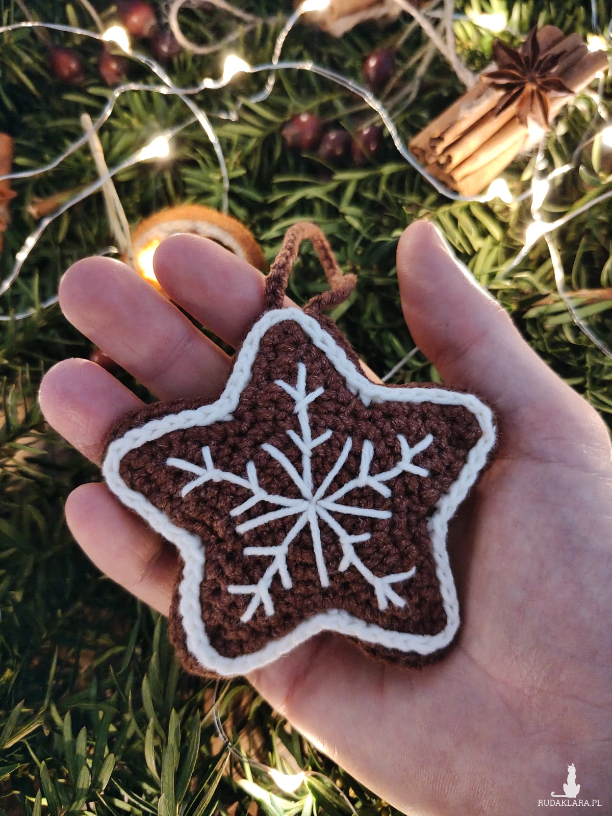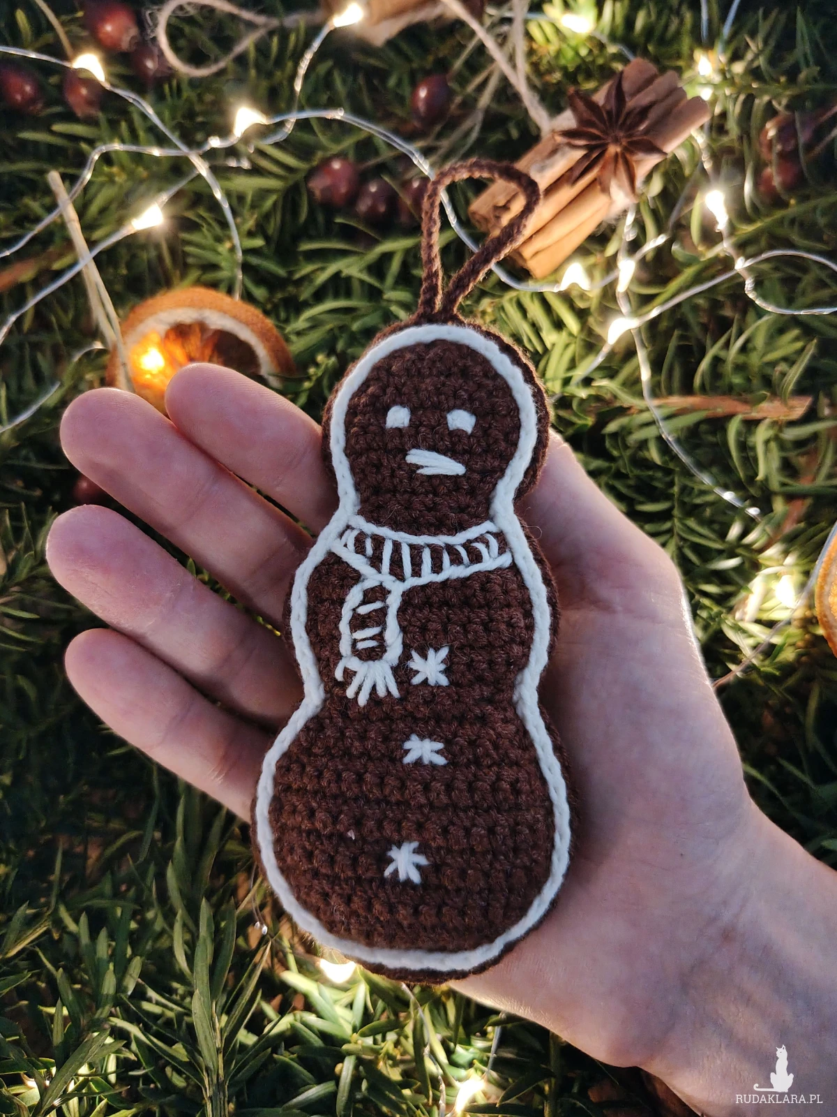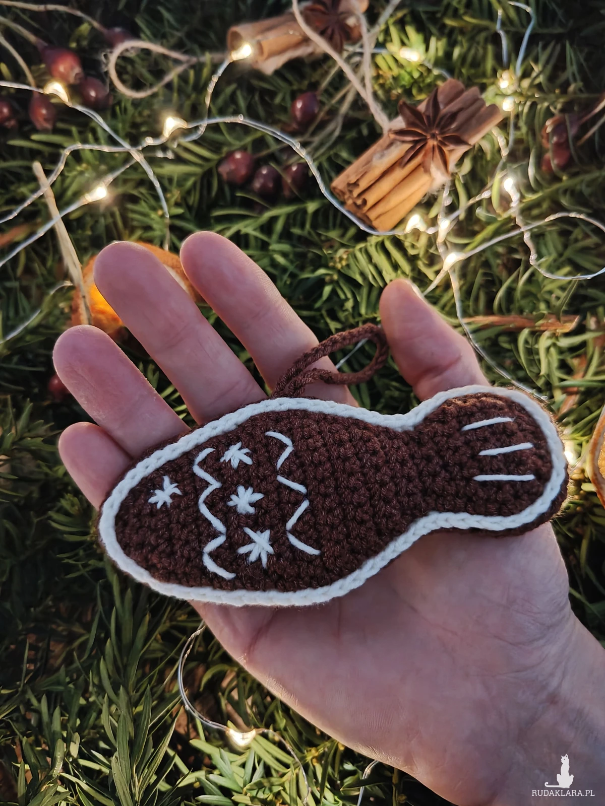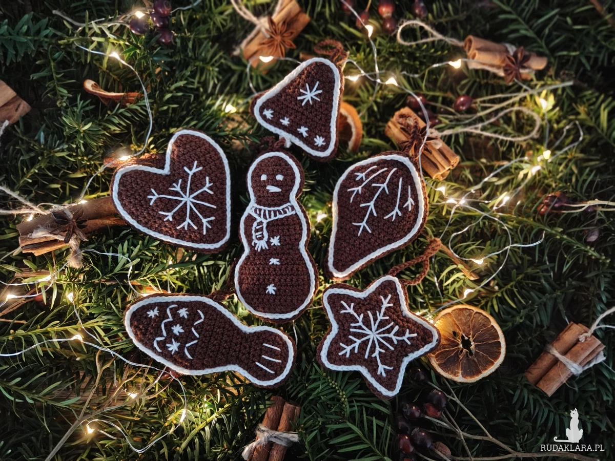 Sześć szydełkowych zawieszek w kształcie pierniczków to niepowtarzalna dekoracja każdej choinki.