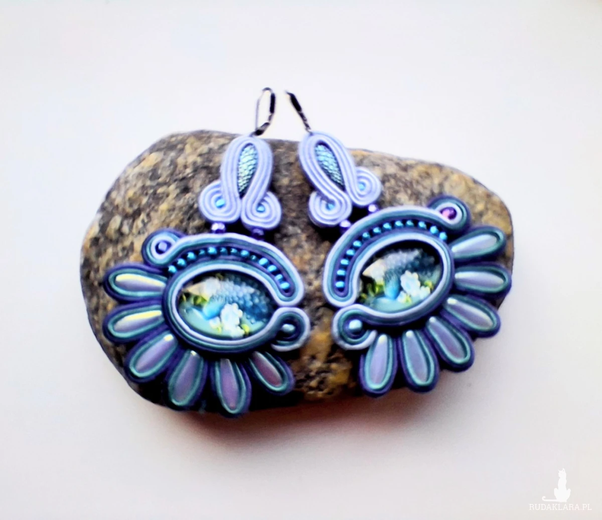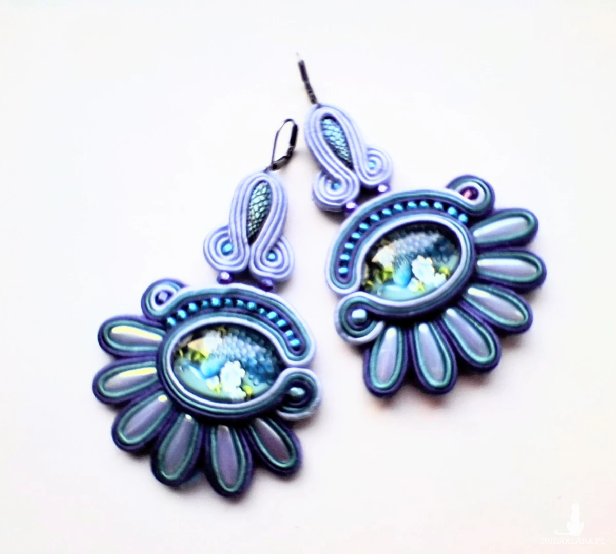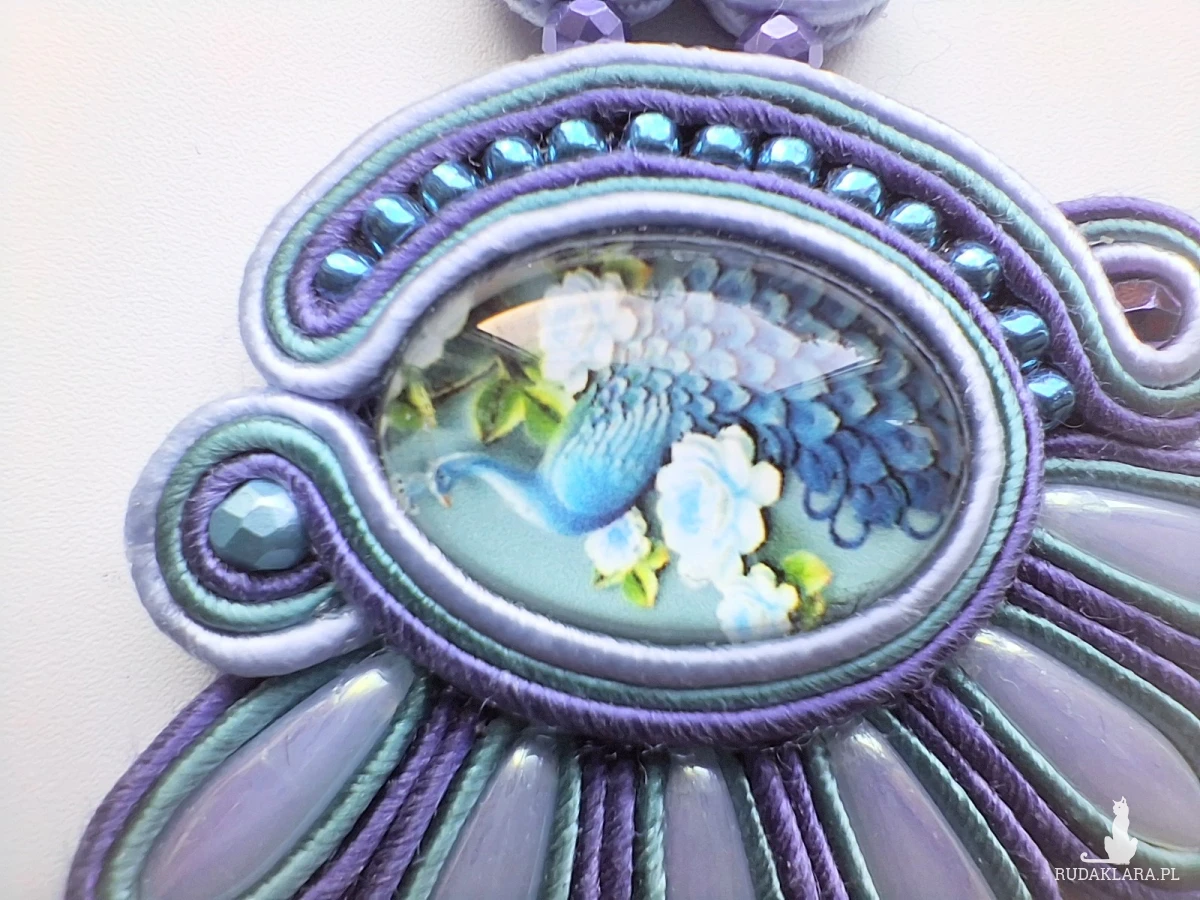 Materiał: sutasz, kaboszon z nadrukiem, japońskie koraliki Toho, Fire Polish, Czech Dagger