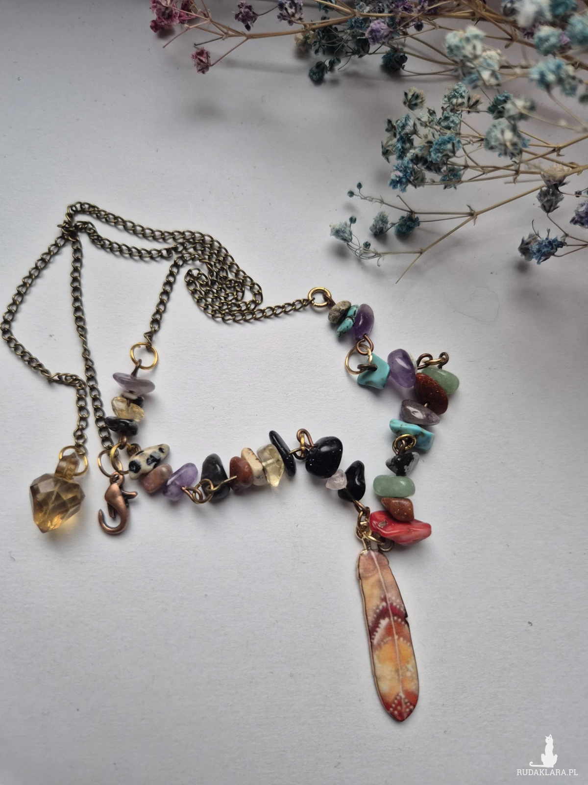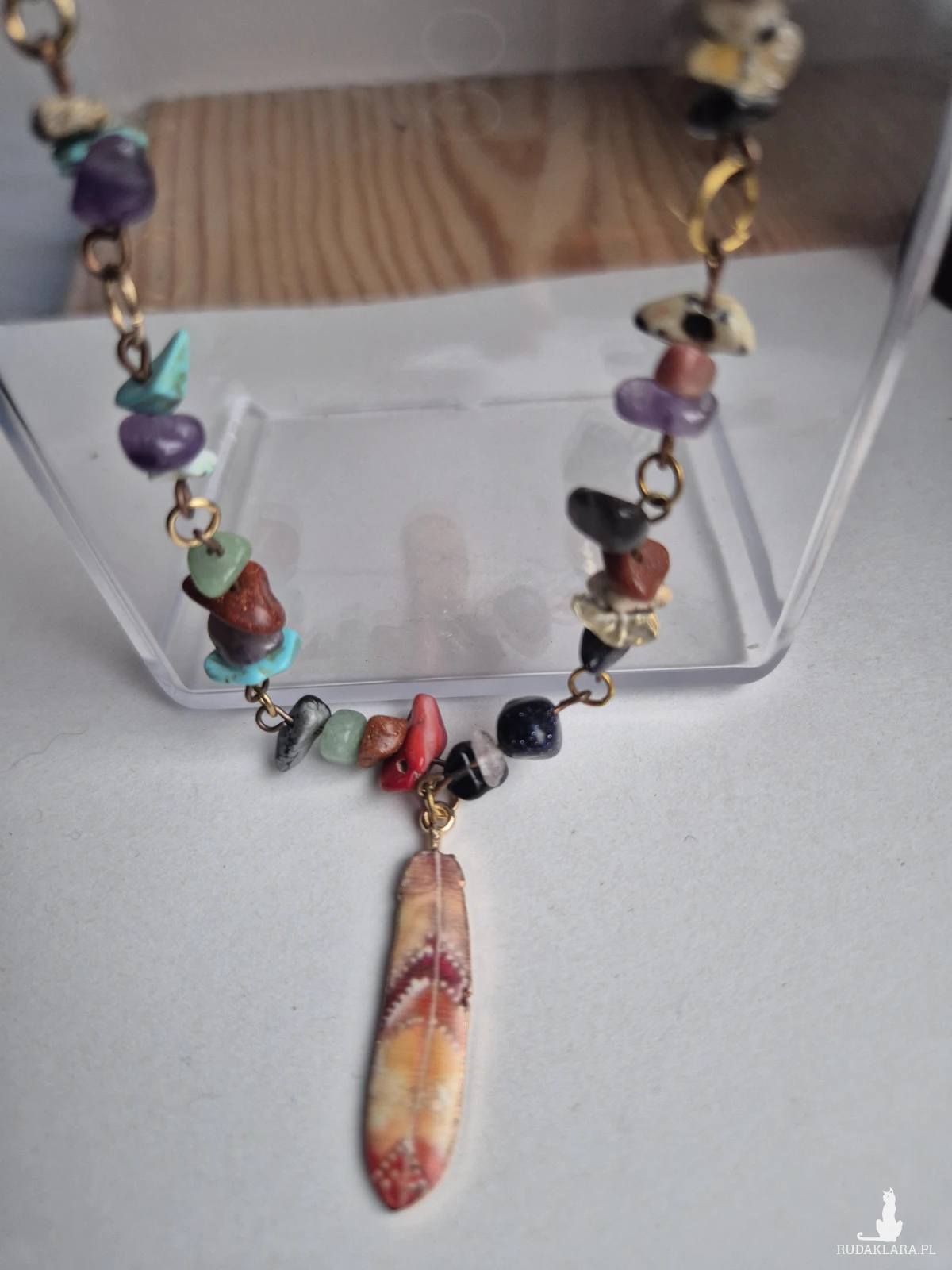 Naszyjnik koralikowy Boho z emaliowanym liściem polecam piękny w pojedynczym egzemplarzu Box X1