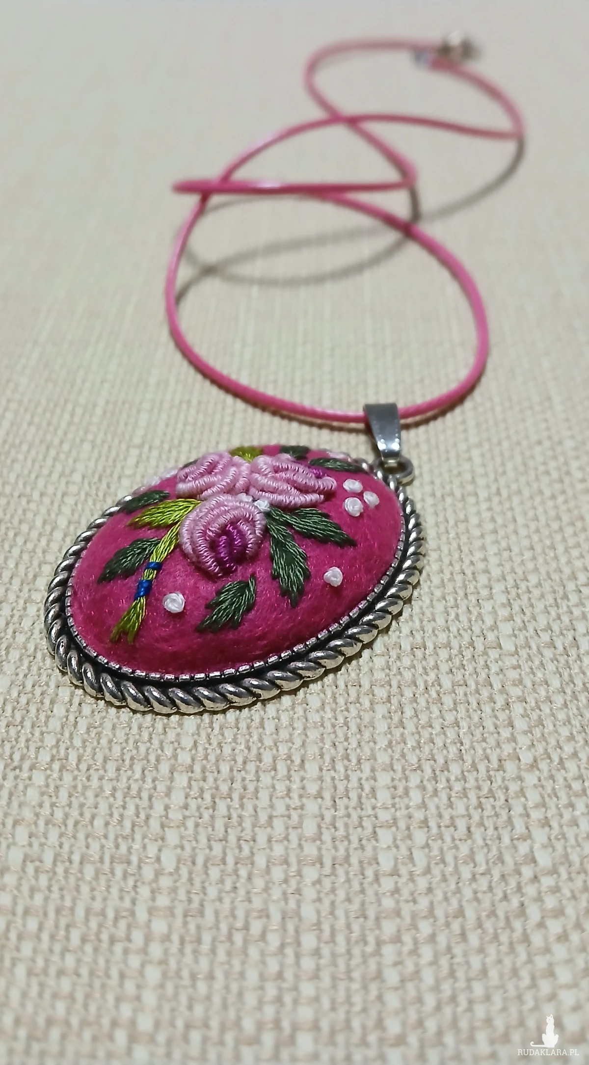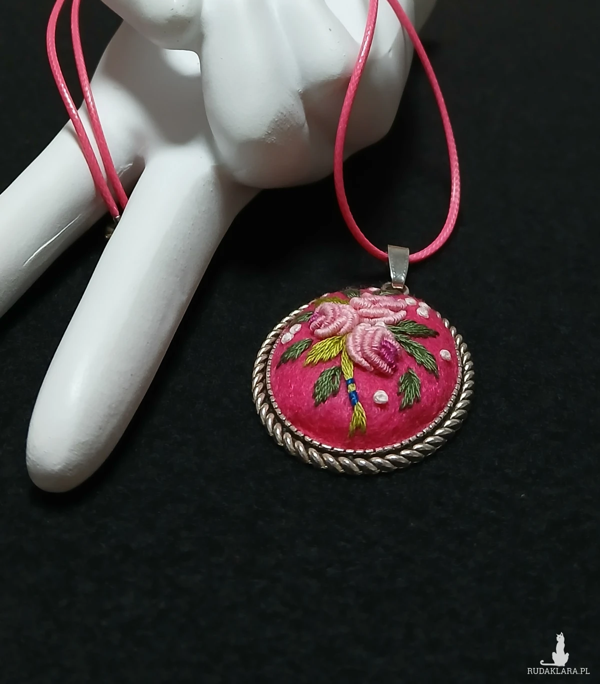 Perfekcyjnie dopracowany haft na filcu wykonałam polską bawełnianą muliną za pomocą igły. Jest on zabezpieczony impregnatem do tkanin ale po dłuższym użytkowaniu można go odświeżyć przy pomocy delikatnego mydła i letniej wody.