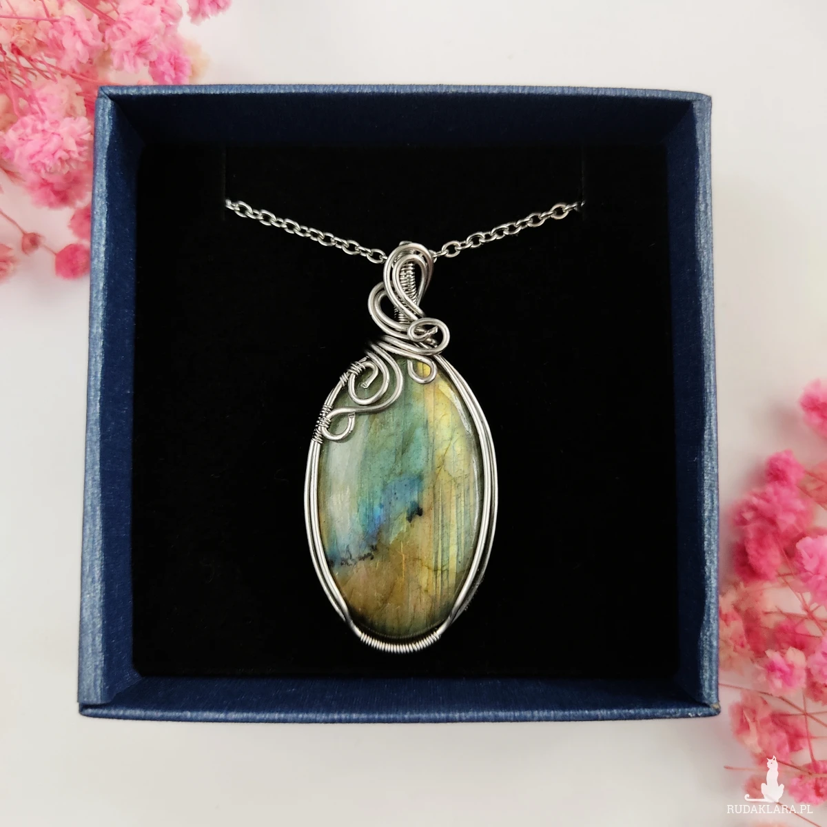Naszyjnik Labradoryt Owal zapakowany w ozdobne pudełko.