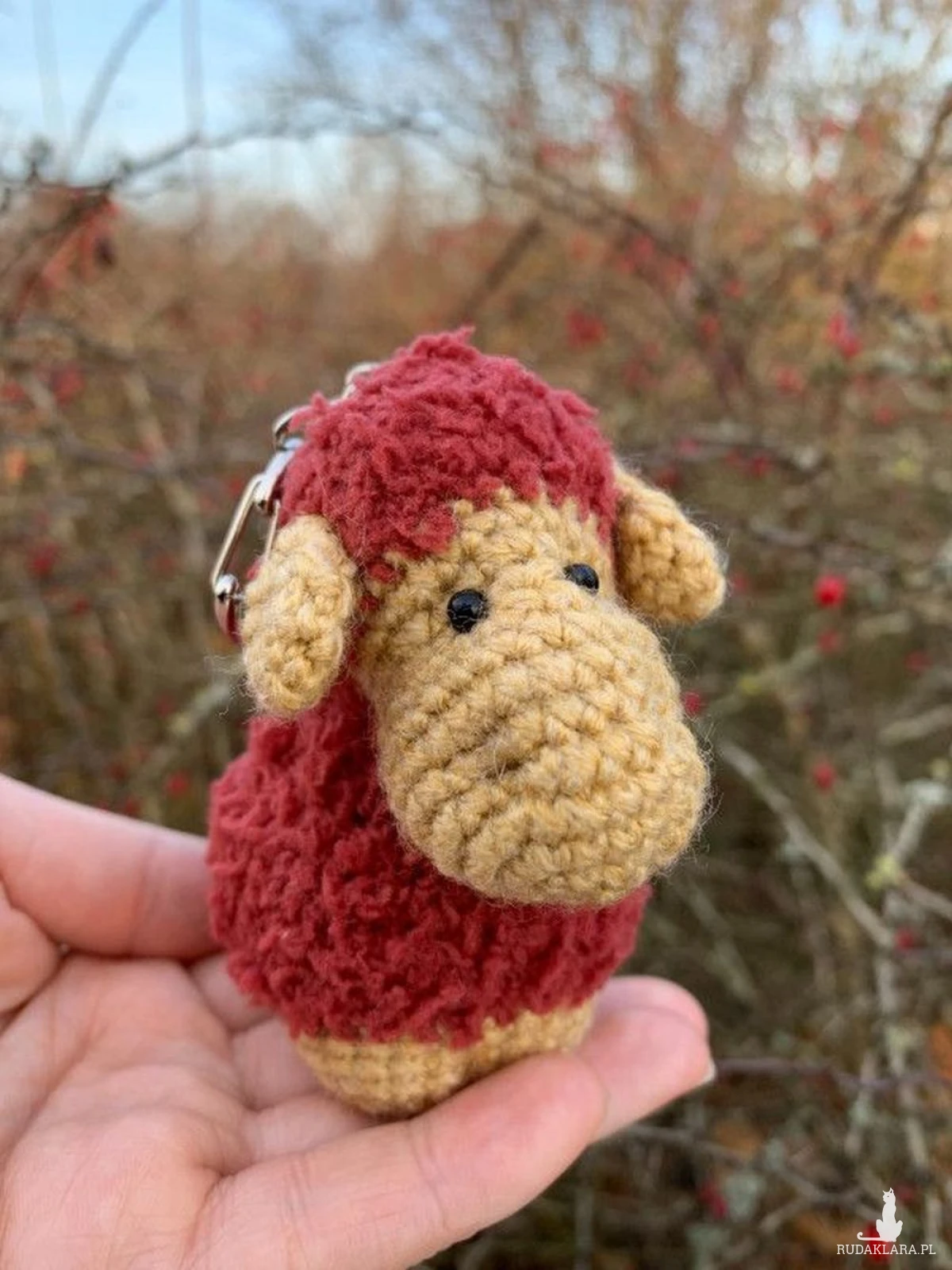 Sympatyczny brelok owieczka wykonany ręcznie z fantazyjnej włóczki na szydełku.