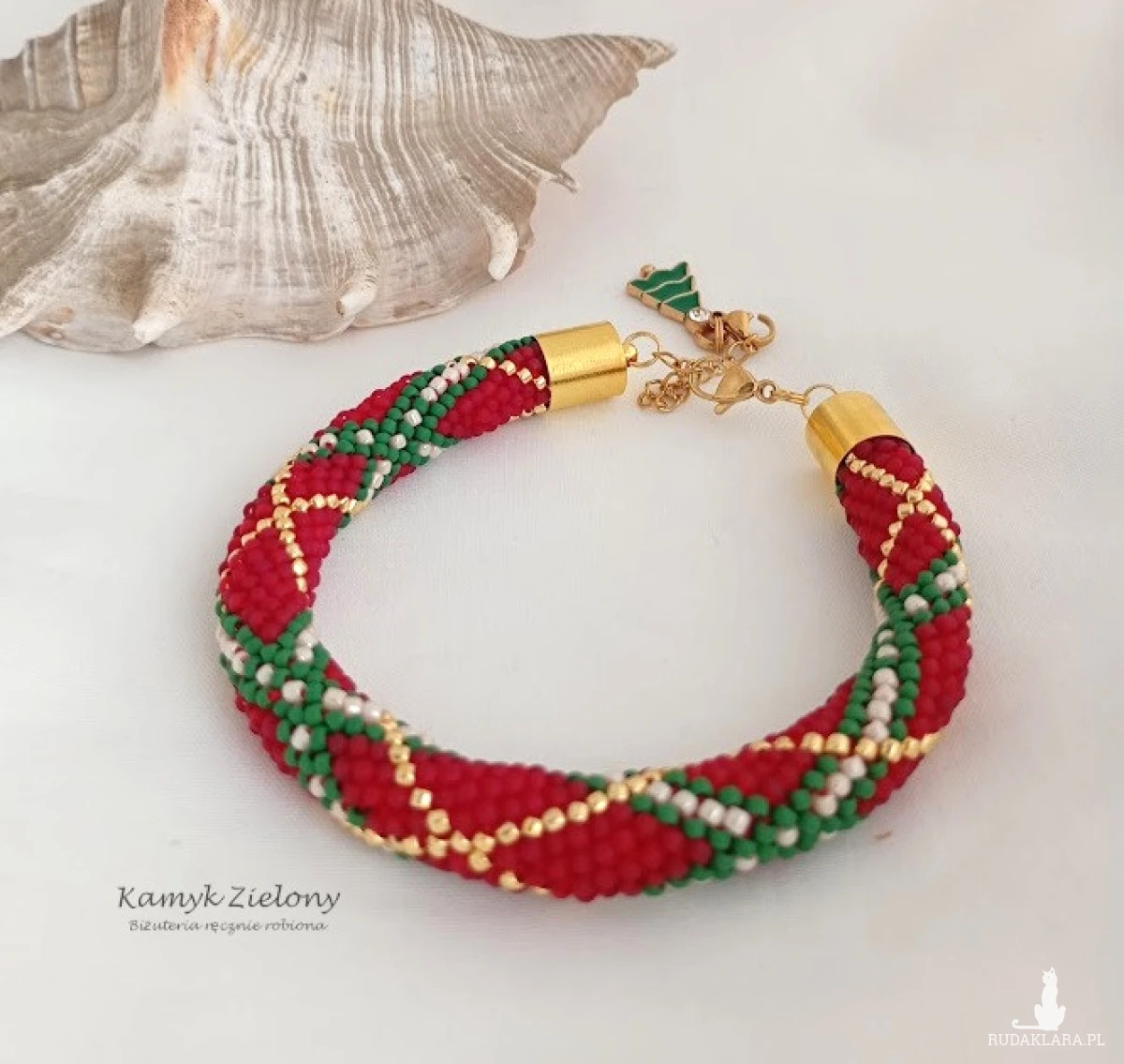 Bransoletka ma regulowaną długość - jest zapinana na karabińczyk z łańcuszkiem przedłużającym. Ozdobę łańcuszka stanowi zawieszka w formie malutkiej choinki, którą jednak można samodzielnie odpiąć i bransoletkę nosić przez cały rok!