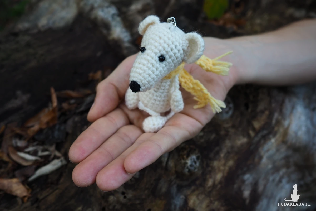 Sympatyczny brelok szczurek wykonany ręcznie z włóczki na szydełku.
