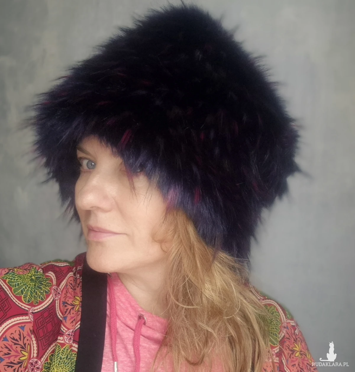 Szalona czapka ze sztucznego futra ,duża zwariowana ,rozmiar na większą głowę albo bujne włosy w centymetrach 59 -61 obwód ,miękka i lekko rozciągliwa, w stylu trochę jak zimowa czapka brytyjskich żołnierzy. Ostatnia, bez powtórek dla kogoś kto uwielbia być widoczny i nie chce znikać w tłumie,polecam box w1