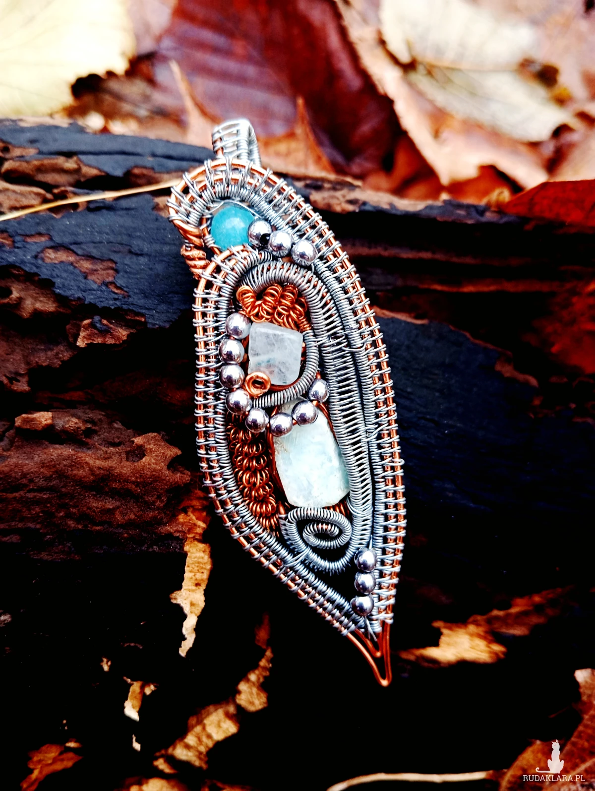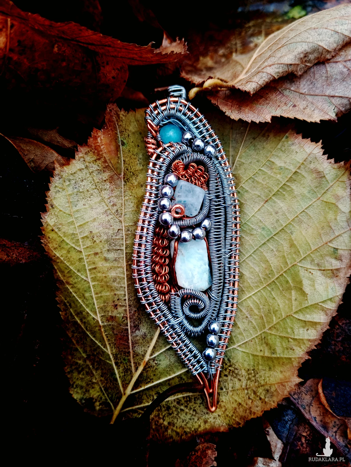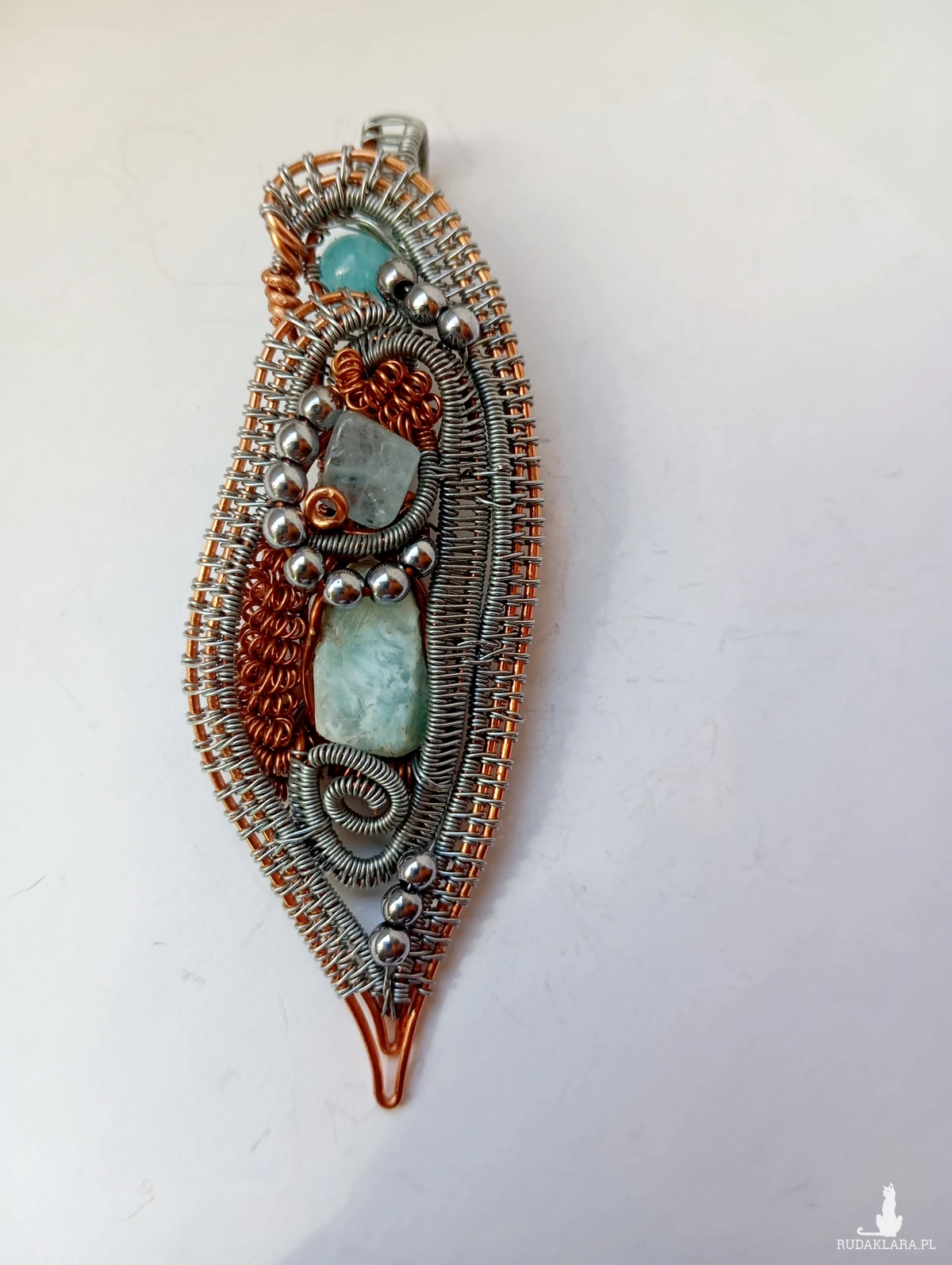 Zawieszka z kamieniami naturalnymi w miedzi i stali