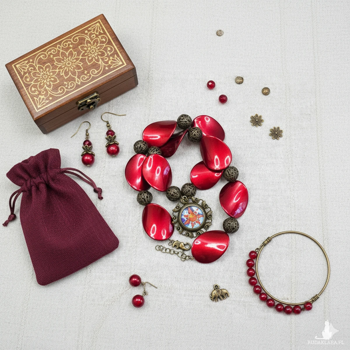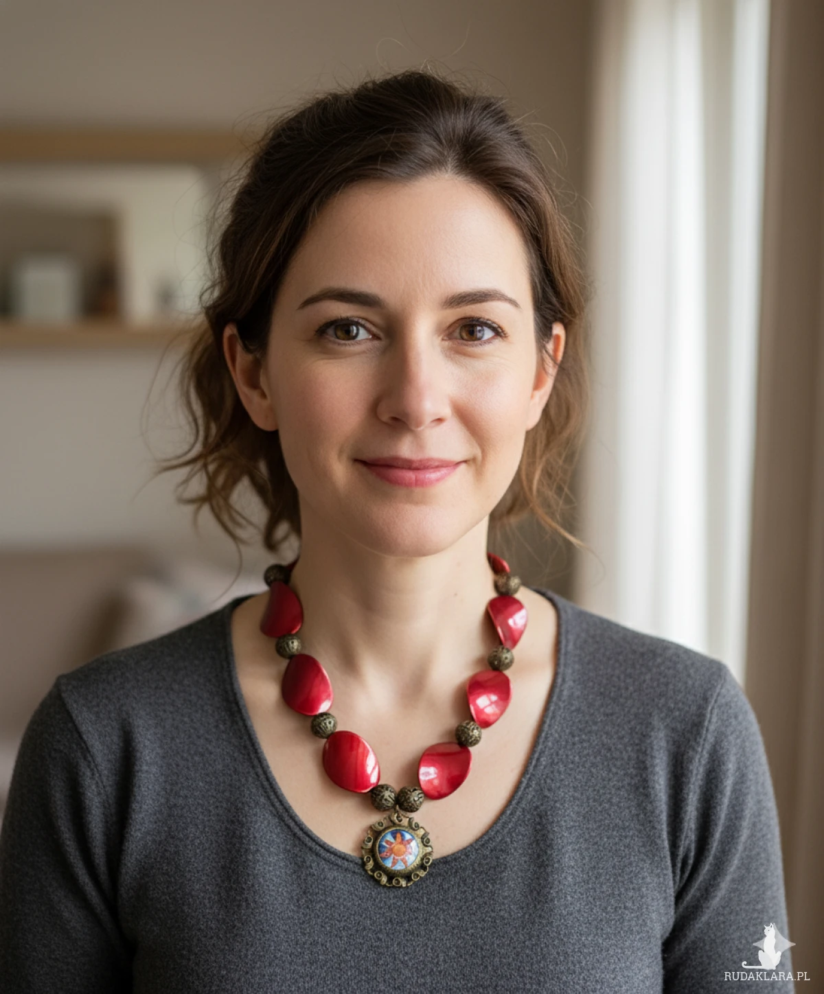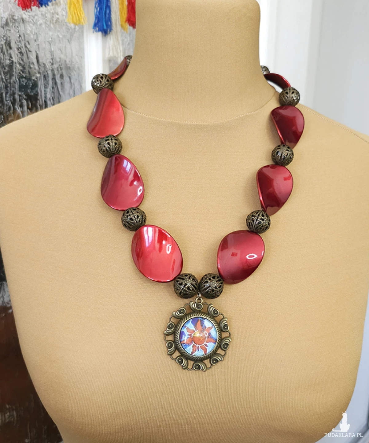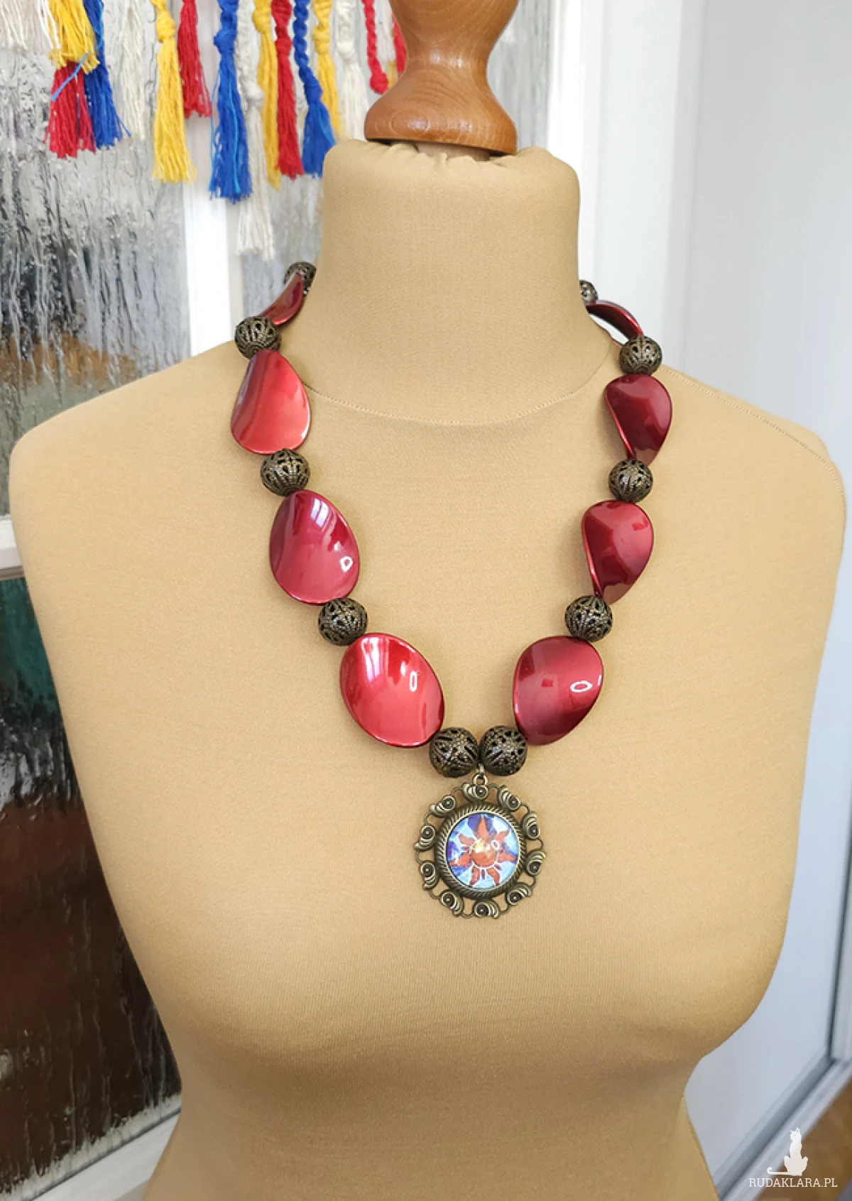 6736 Naszyjnik Statement Boho, Czerwone Platerowane Korale