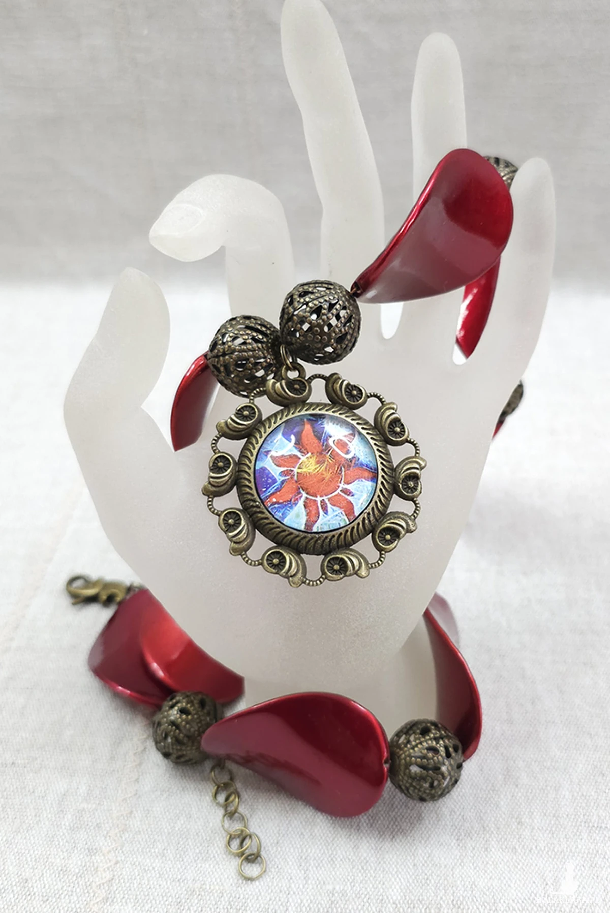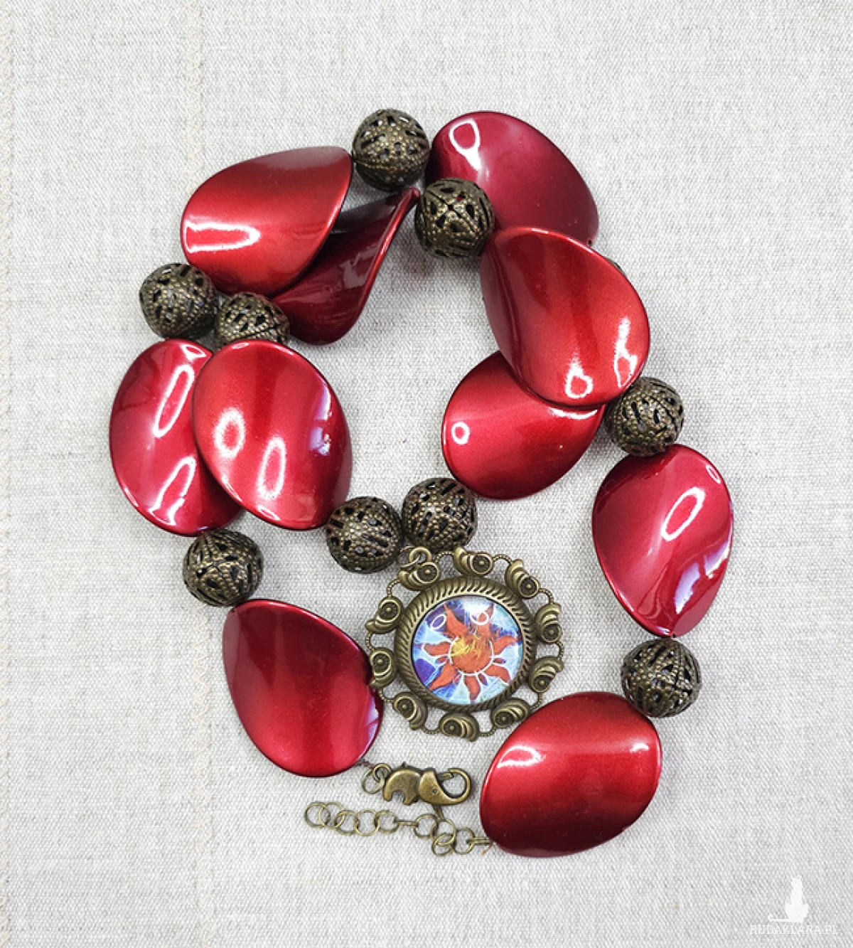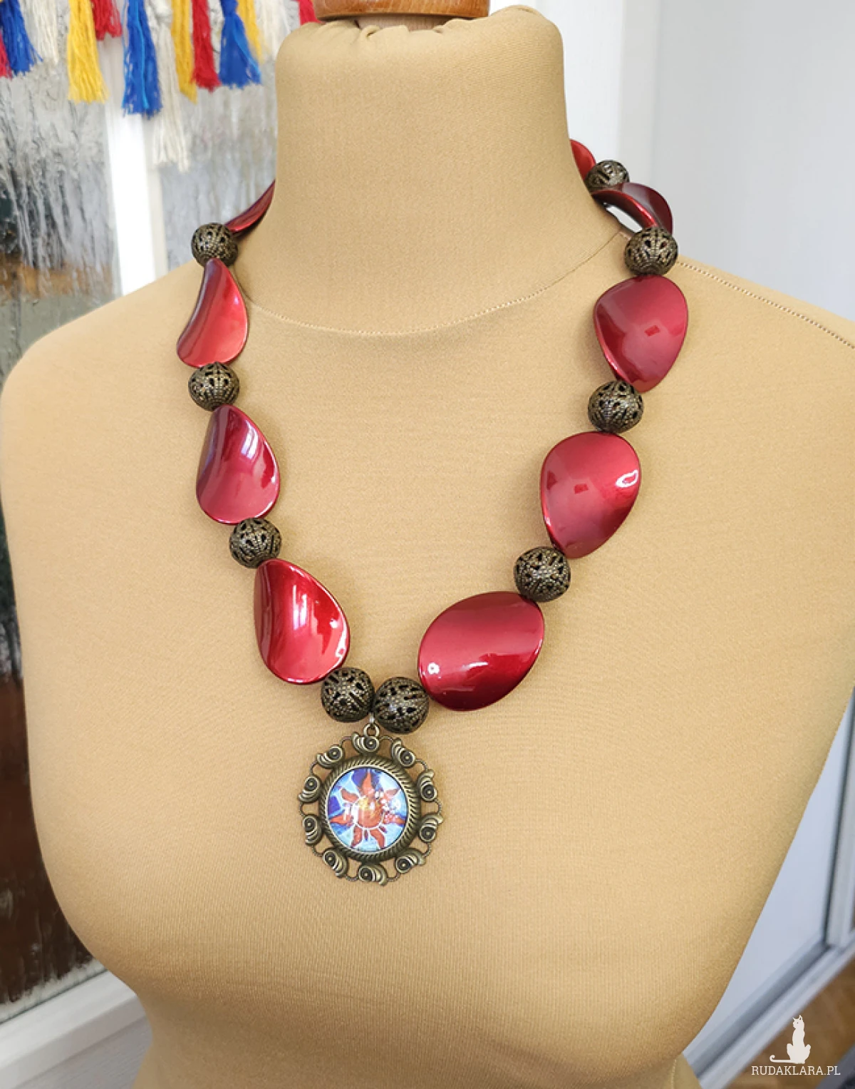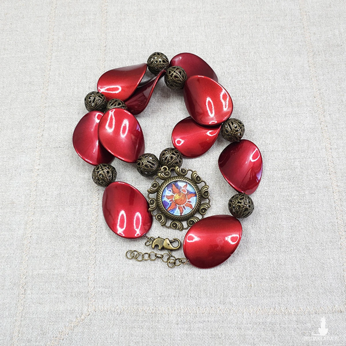 6736 Naszyjnik Statement Boho, Czerwone Platerowane Korale