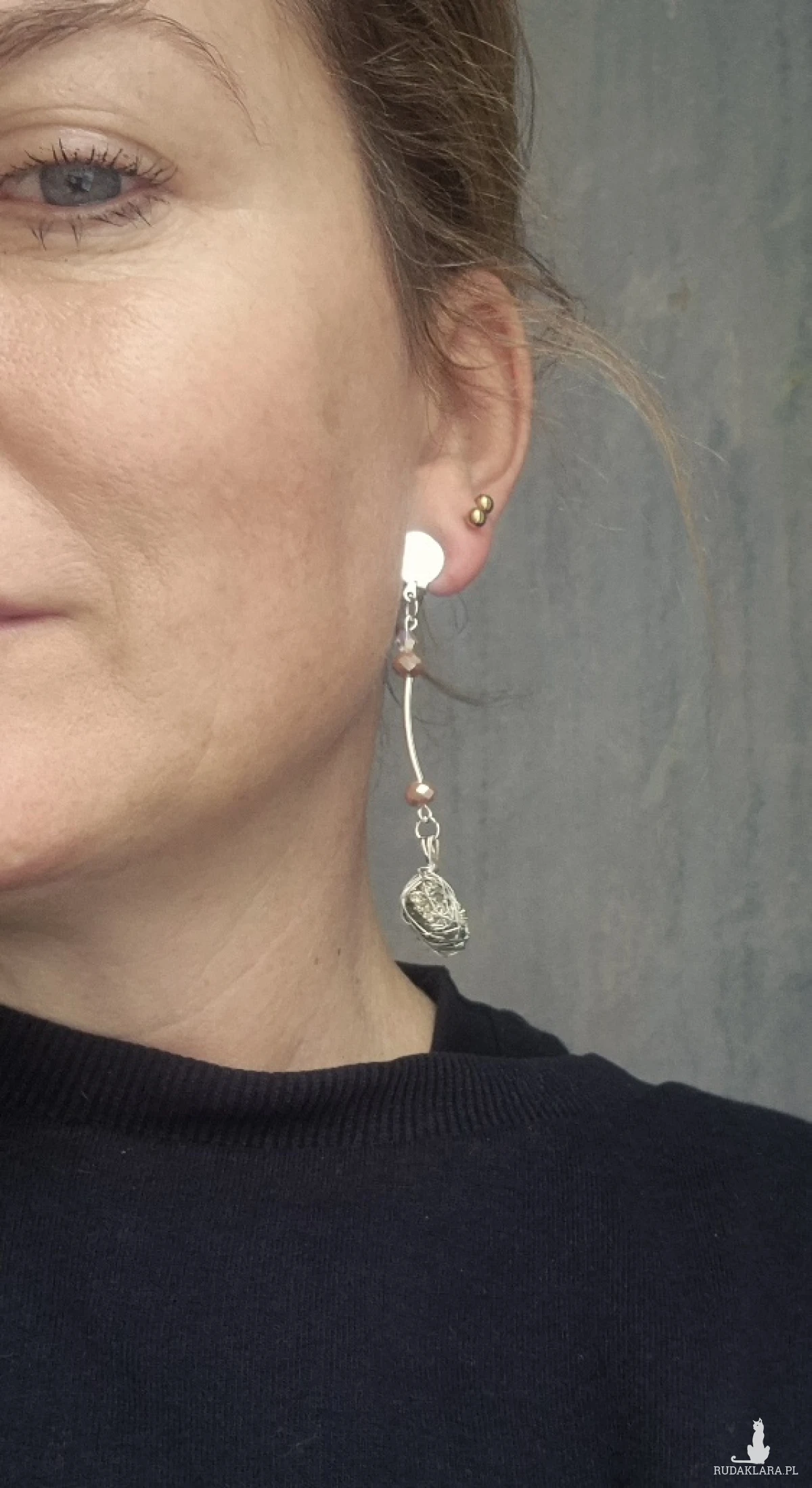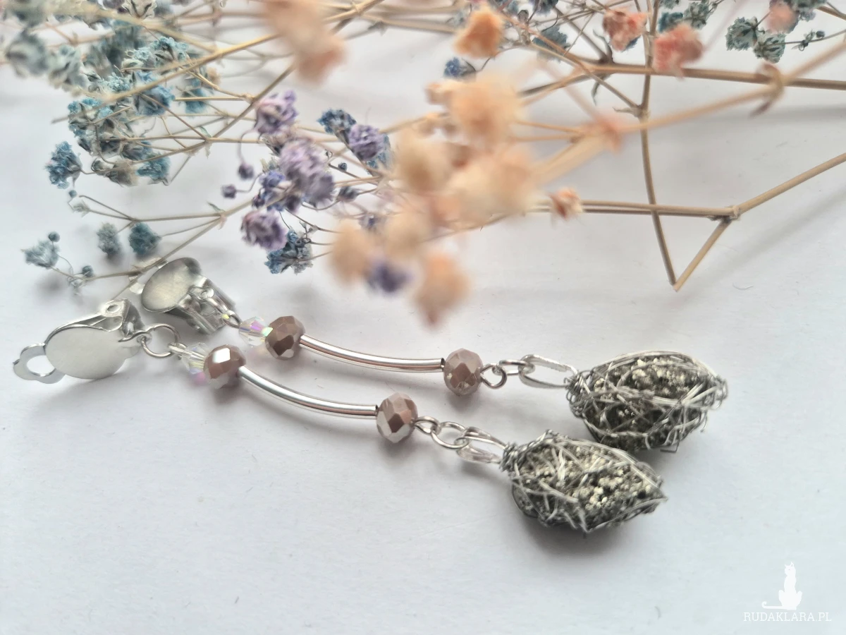 Klipsy z pirytem naturalnym i liściem.Piryt pomaga w przyciąganiu pozytywnej energii oraz stymulacji entuzjazmu do życia. Jest on kojarzony z przełamywaniem negatywnych myśli i przyciąganiem do siebie pozytywnych wydarzeń. Piryt ma także zdolność pobudzania kreatywności i inspiracji. Wibracje tego kamienia otwierają umysł na nowe pomysły i perspektywy.box x1