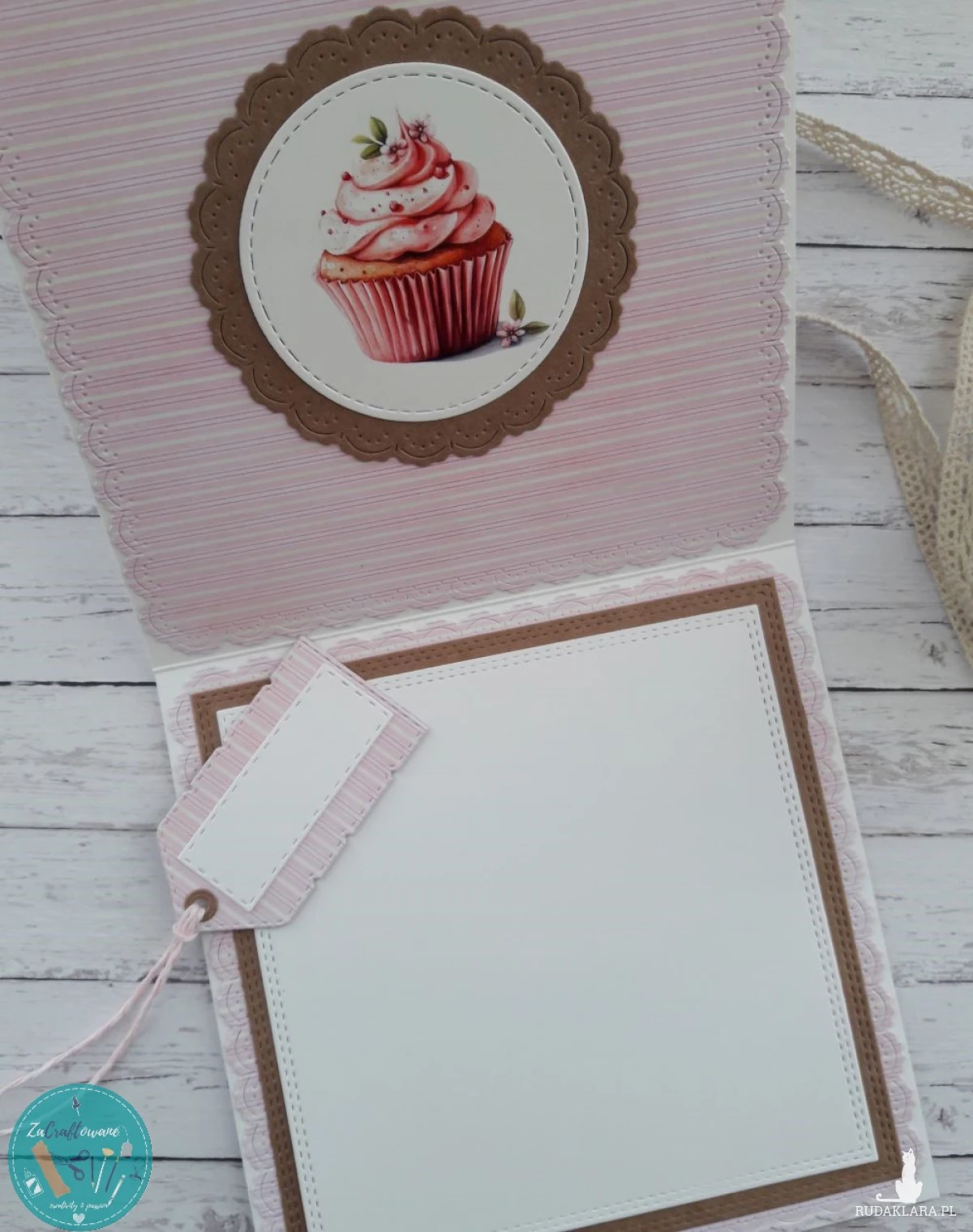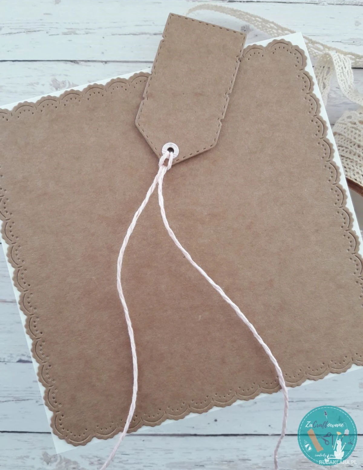 Do kartki dołączam GRATIS w postaci widocznej na zdjęciu etykietki, za pomocą której można podpisać upominek imieninowy i przyczepić ją do wstążki, którą obwiązany jest prezent, za pomocą sznureczka, który również znajduje się w zestawie.