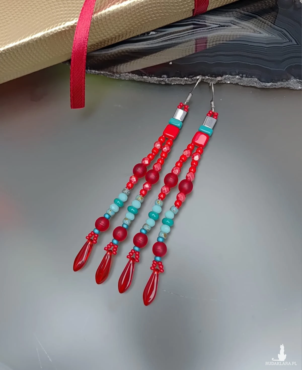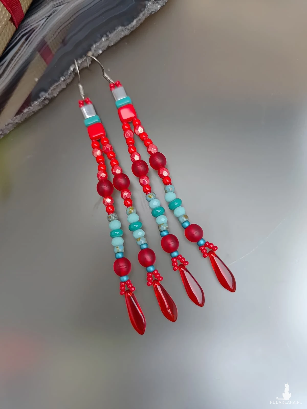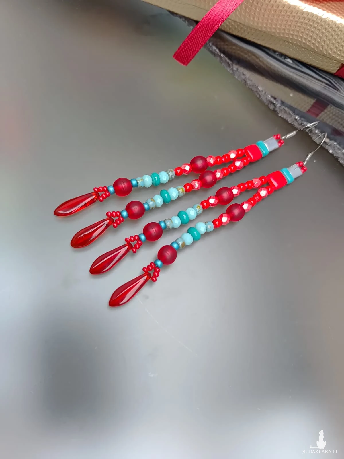 w kolorze czerwonym i turkusowym. Kulki czerwone najwieksze 6 mm i inne