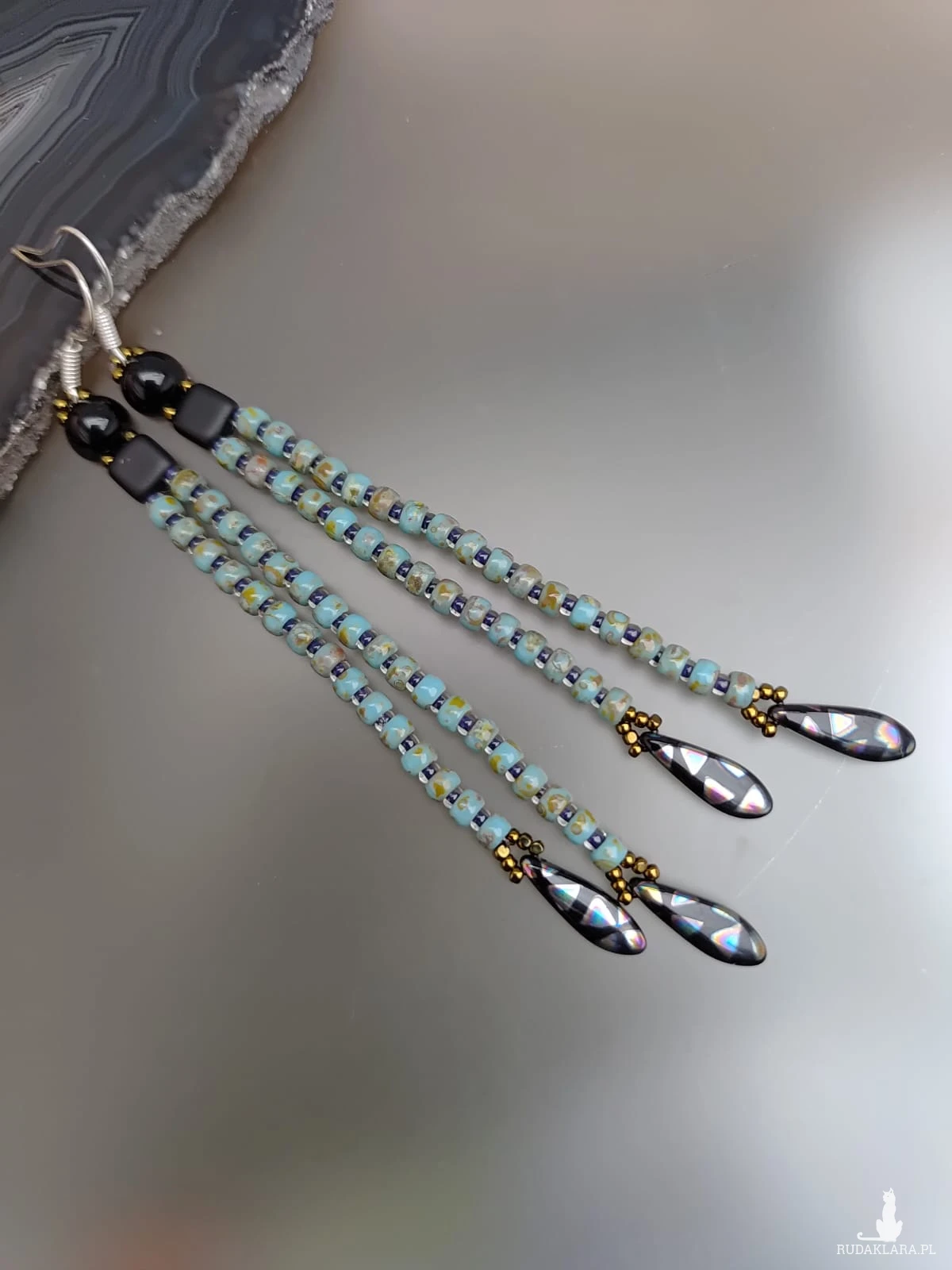 Kolczyki w kolorze zielonego turkusu, koraliki imitujące kamień z