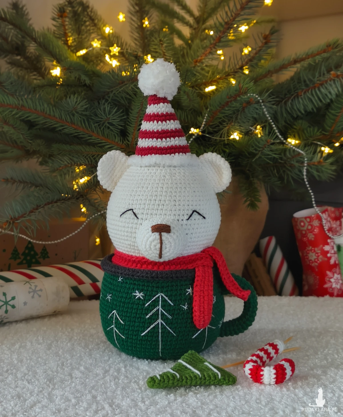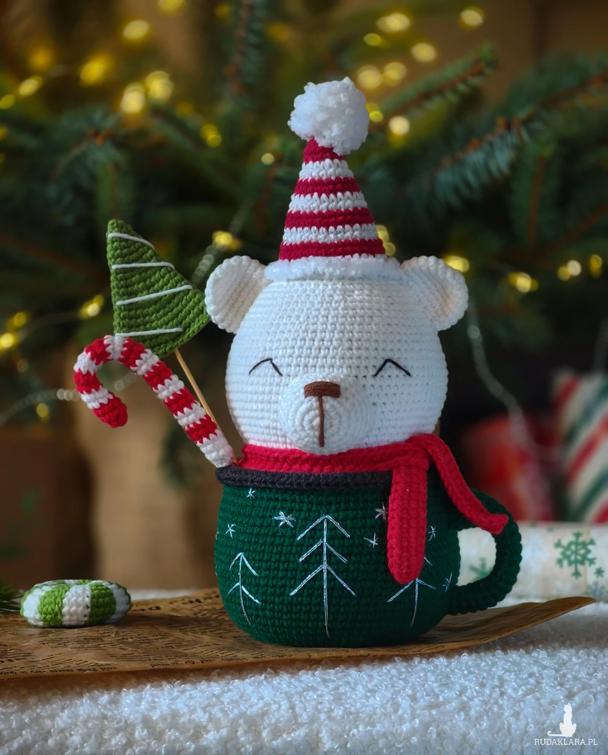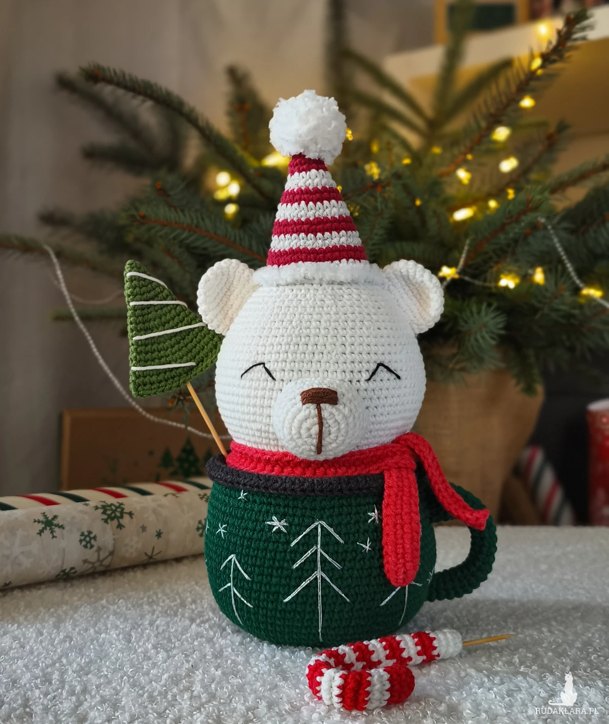 Świąteczny miś w kubku wykonany na szydełku to doskonały i unikalny prezent na Święta Bożego Narodzenia dla całej rodziny czy przyjaciół. To świetny prezent do dekoracji wnętrz lub unikalną dekoracją do biura czy na półkę z książkami.