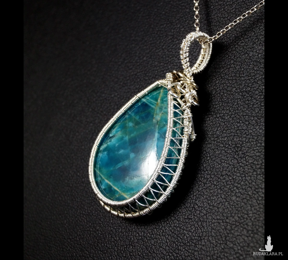 Wisior zaprojektowany i wykonany przeze mnie od podstaw bardzo pracochłonną i precyzyjną techniką wire-wrapping ze srebra próby 925, 930 oraz 999,