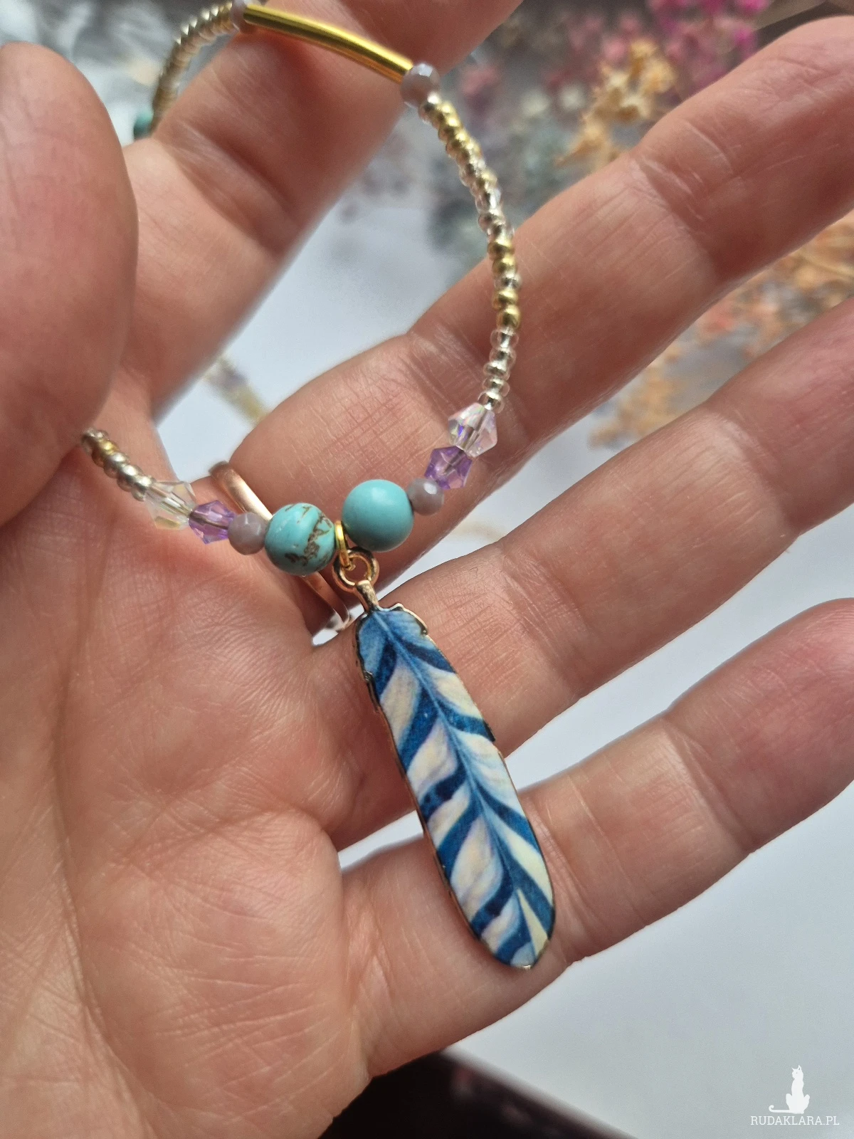 Naszyjnik koralikowy Boho z emaliowanym liściem polecam piękny w pojedynczym egzemplarzu Box X1