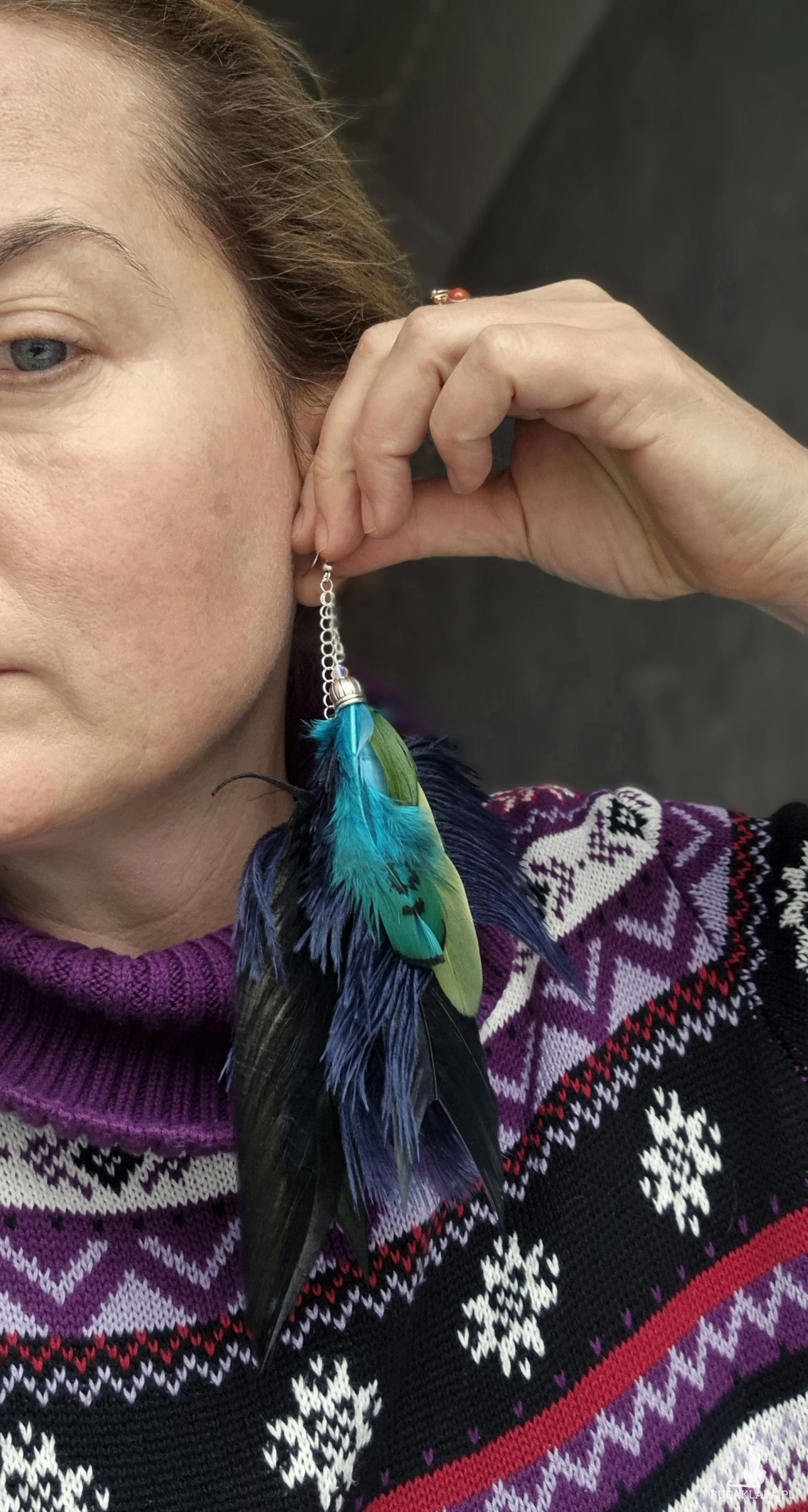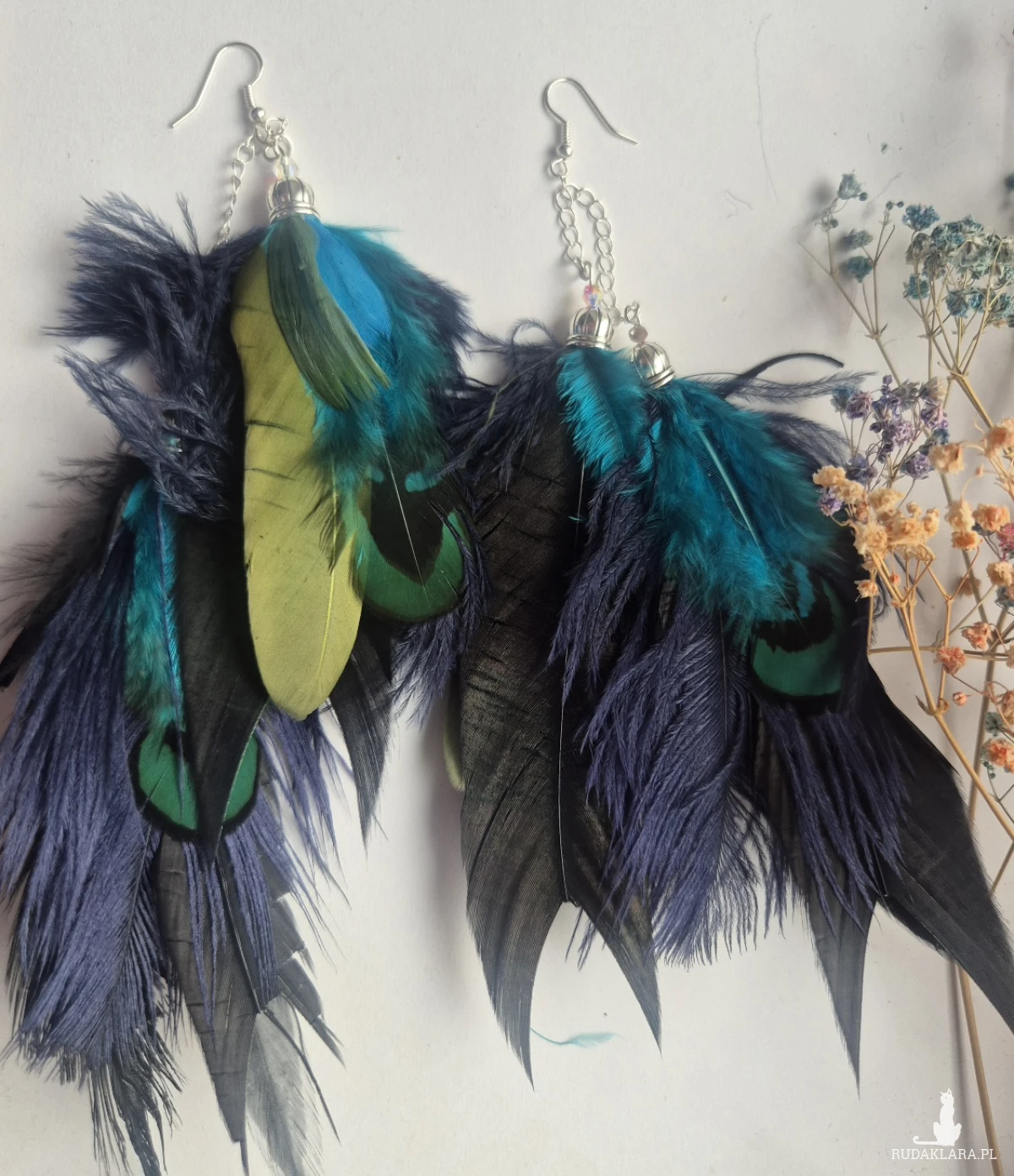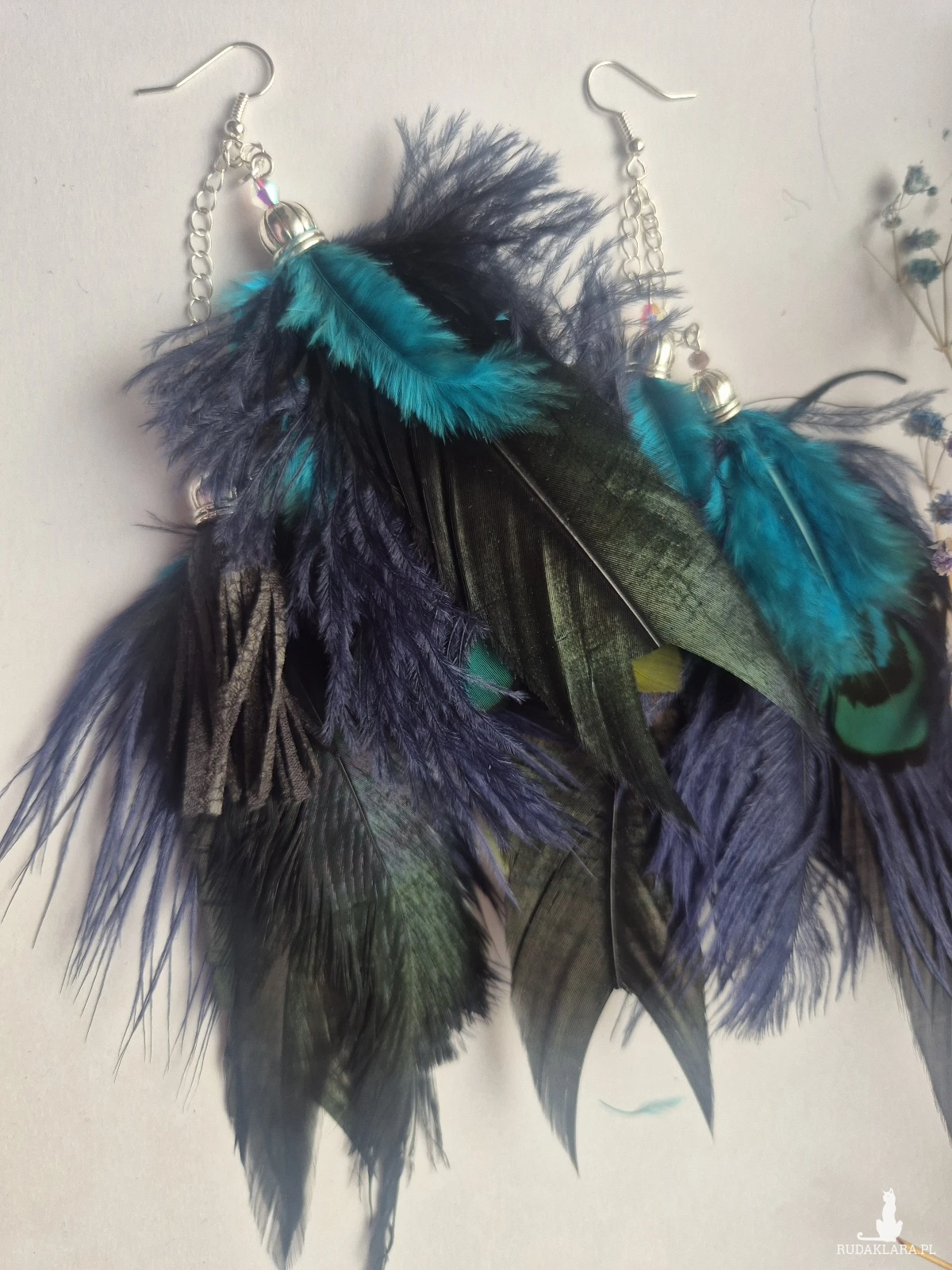 Kolczyki pióra boho kolorowe lekkie wykonane w pojedynczym egzemplarzu
