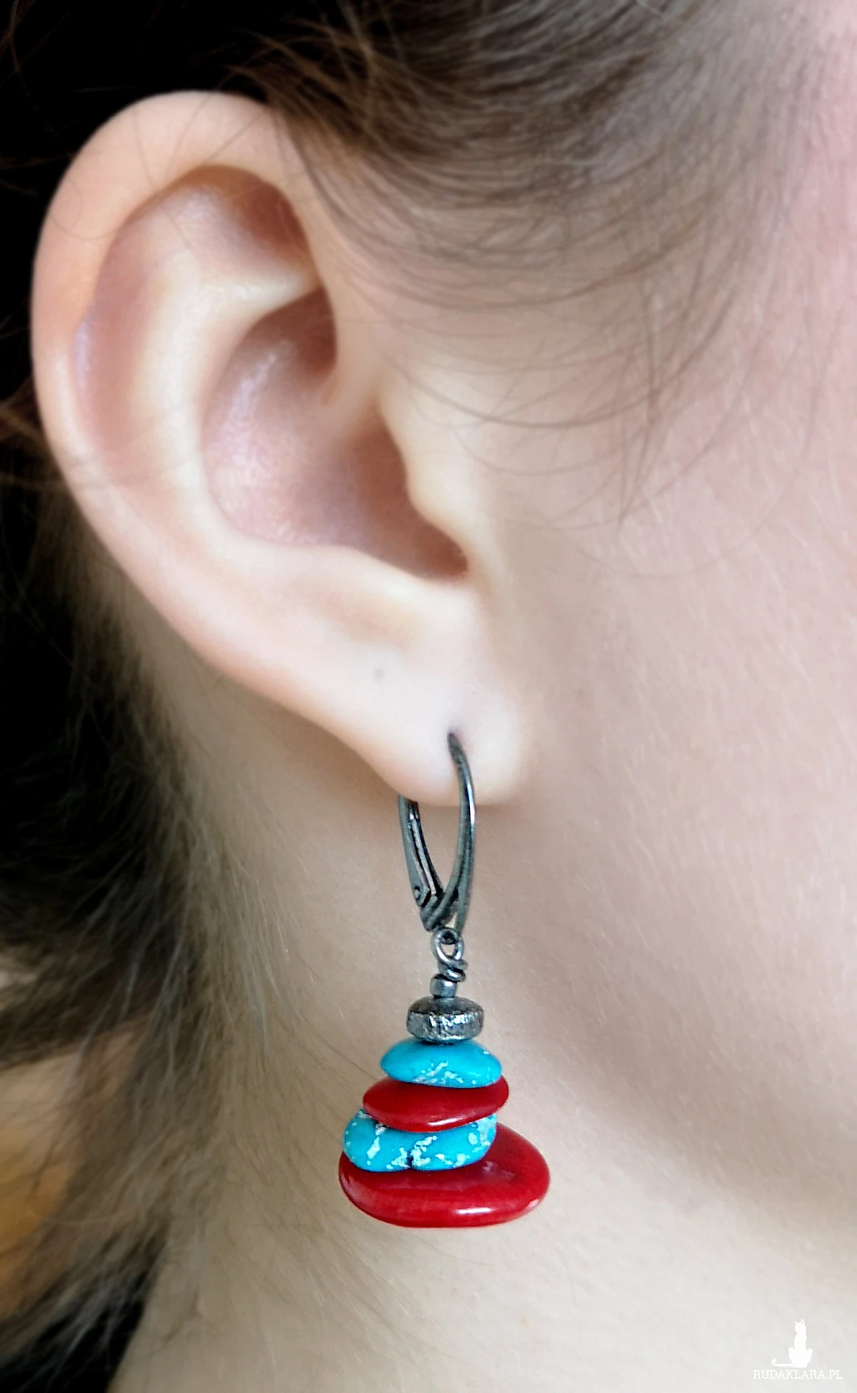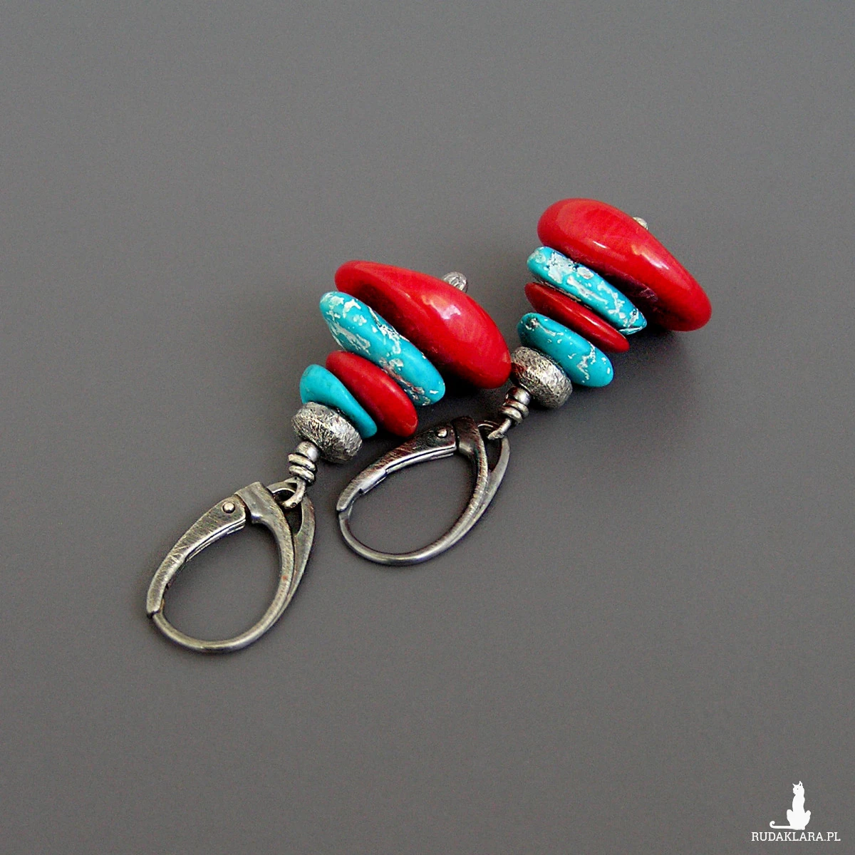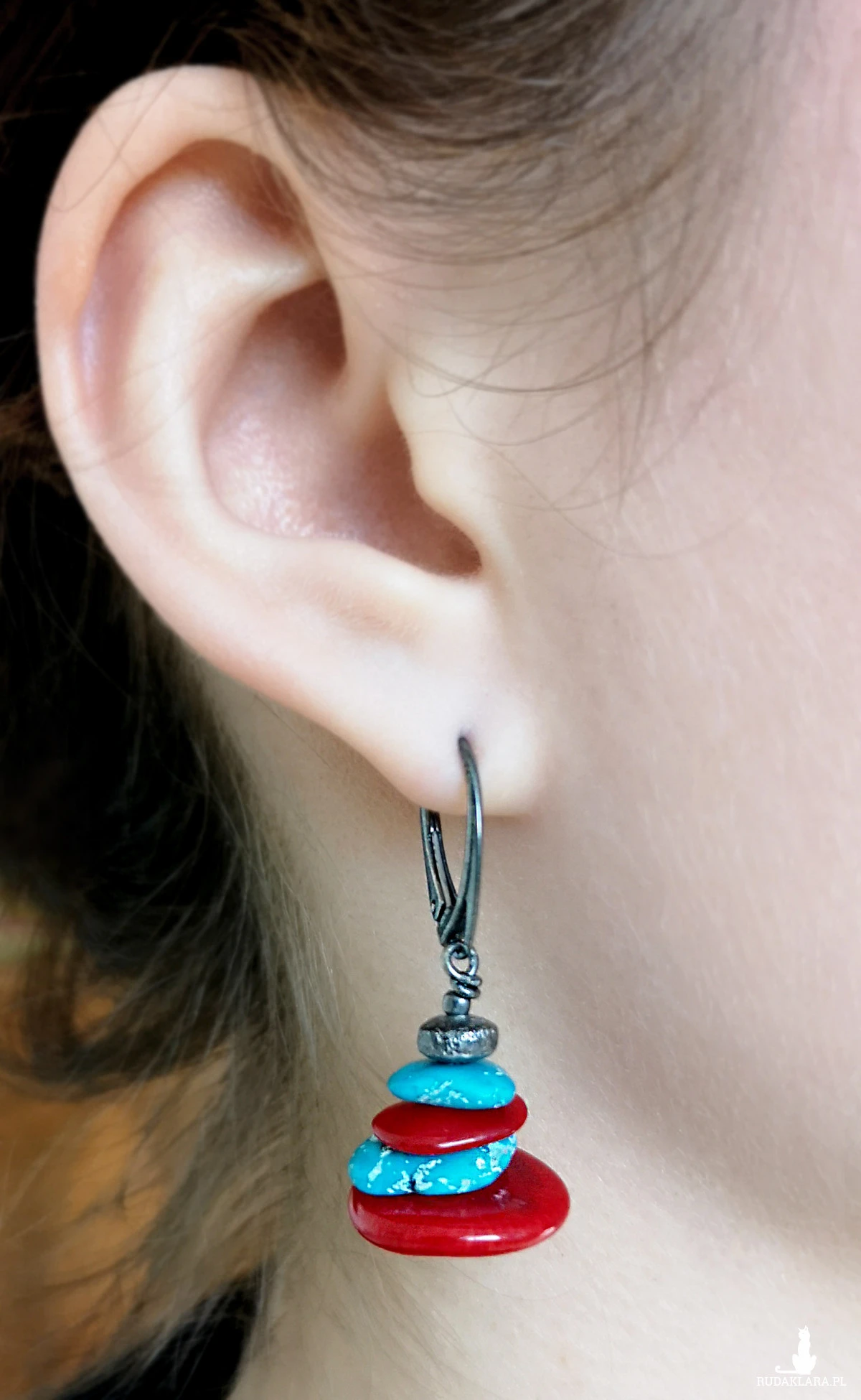 Kolczyki wykonane w mojej pracowni ze srebra próby 925, patynowane i szczotkowane.