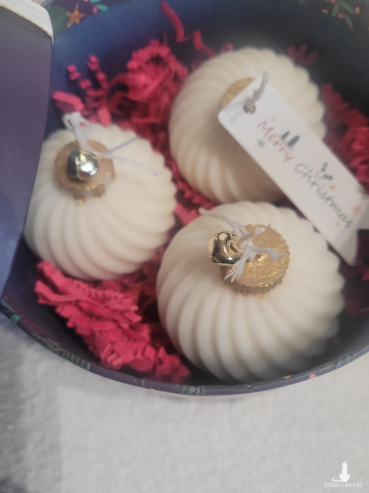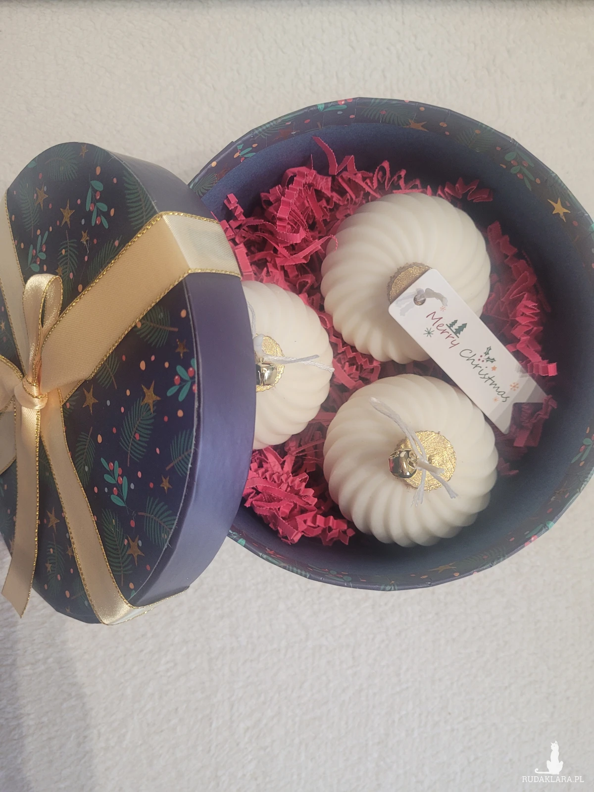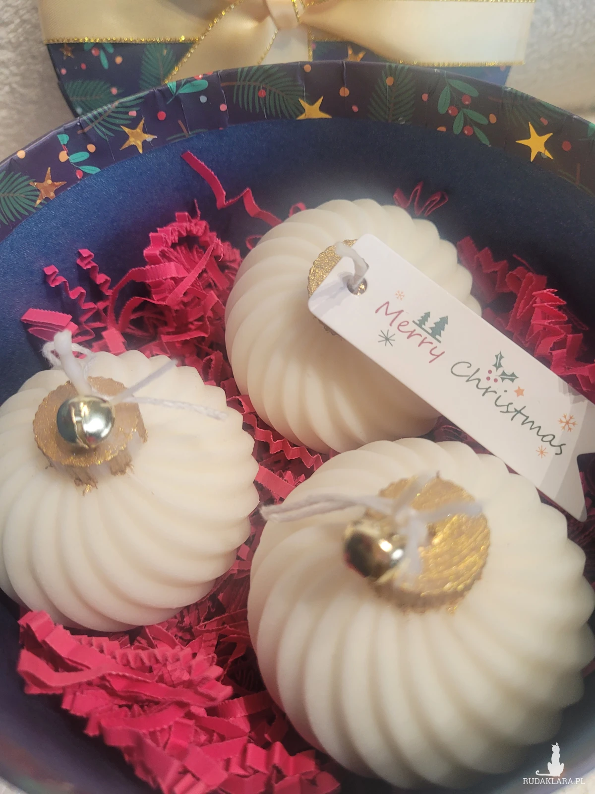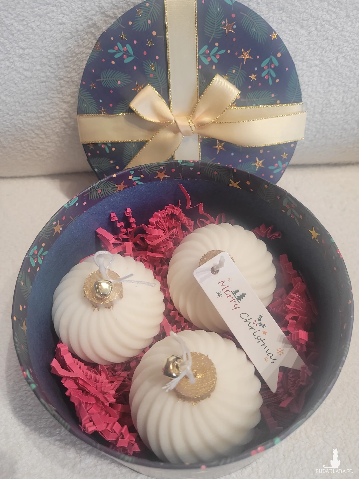 Box upominkowy ze świecami sojowymi w pudełku z kokardą