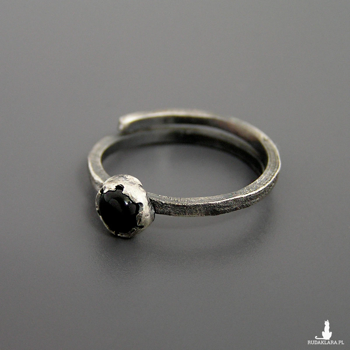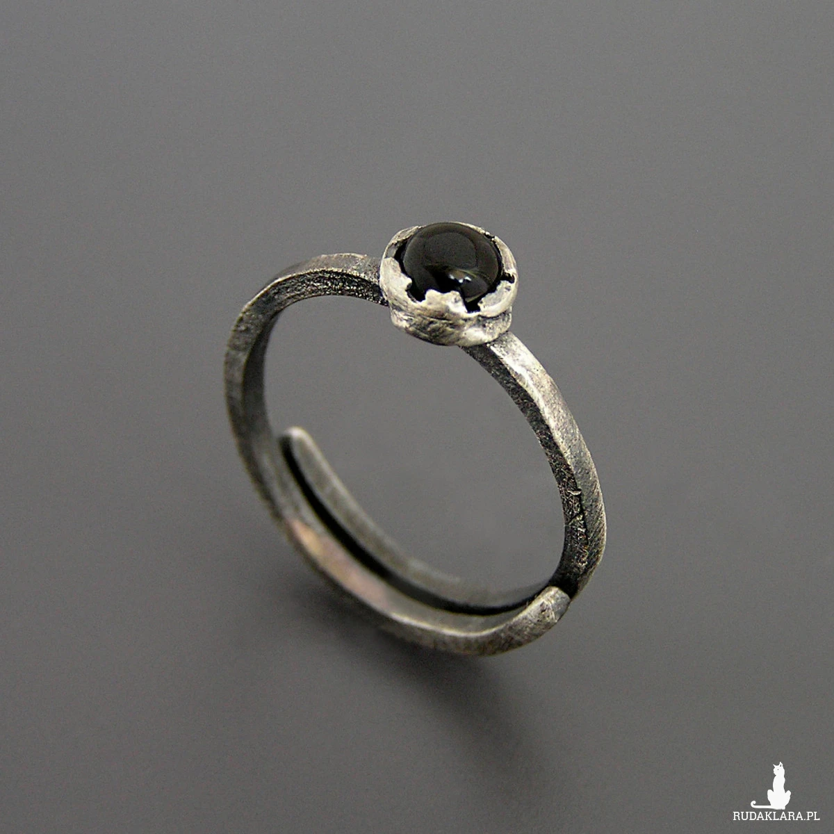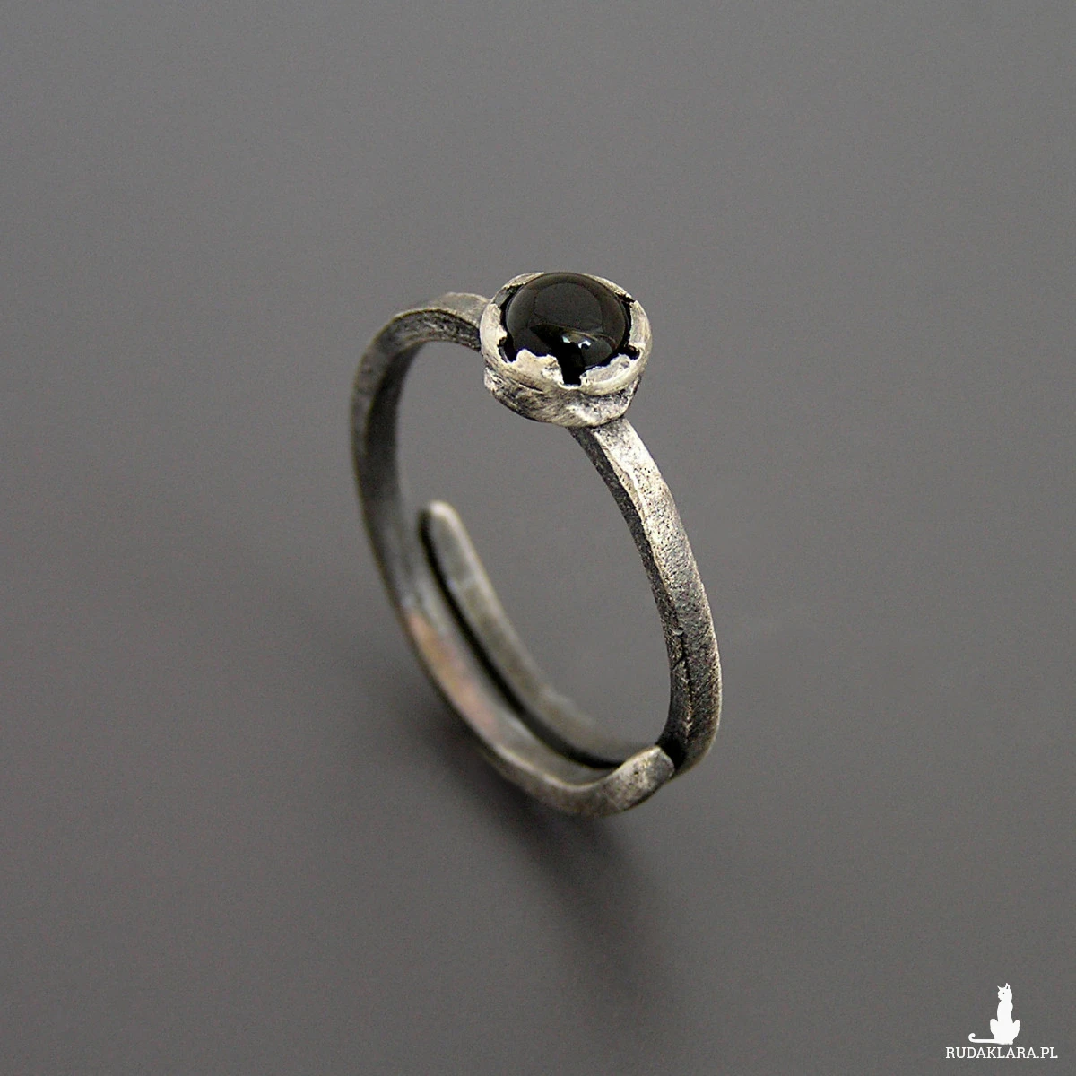 Surowy pierścionek z onyksem, srebro 925, regulowany, rozmiar 9 - 28