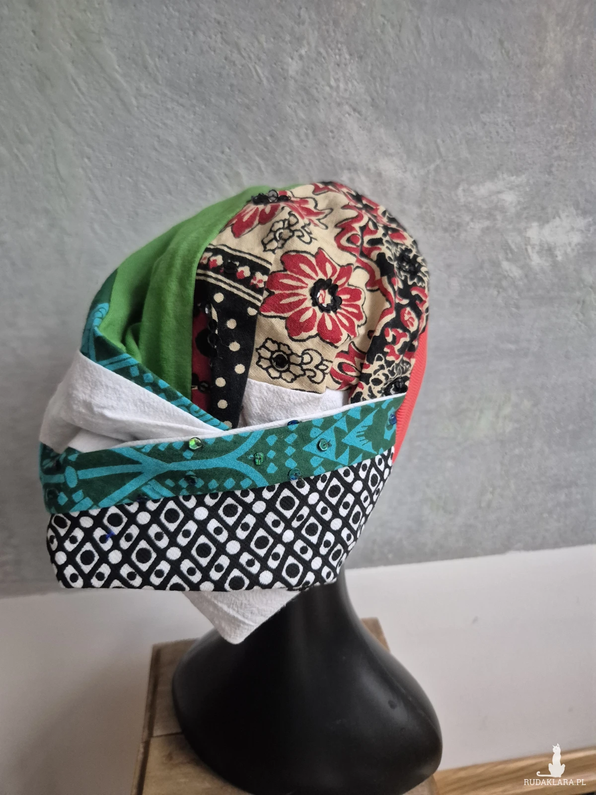 Czapka patchworkowa turbanowa kolorowa