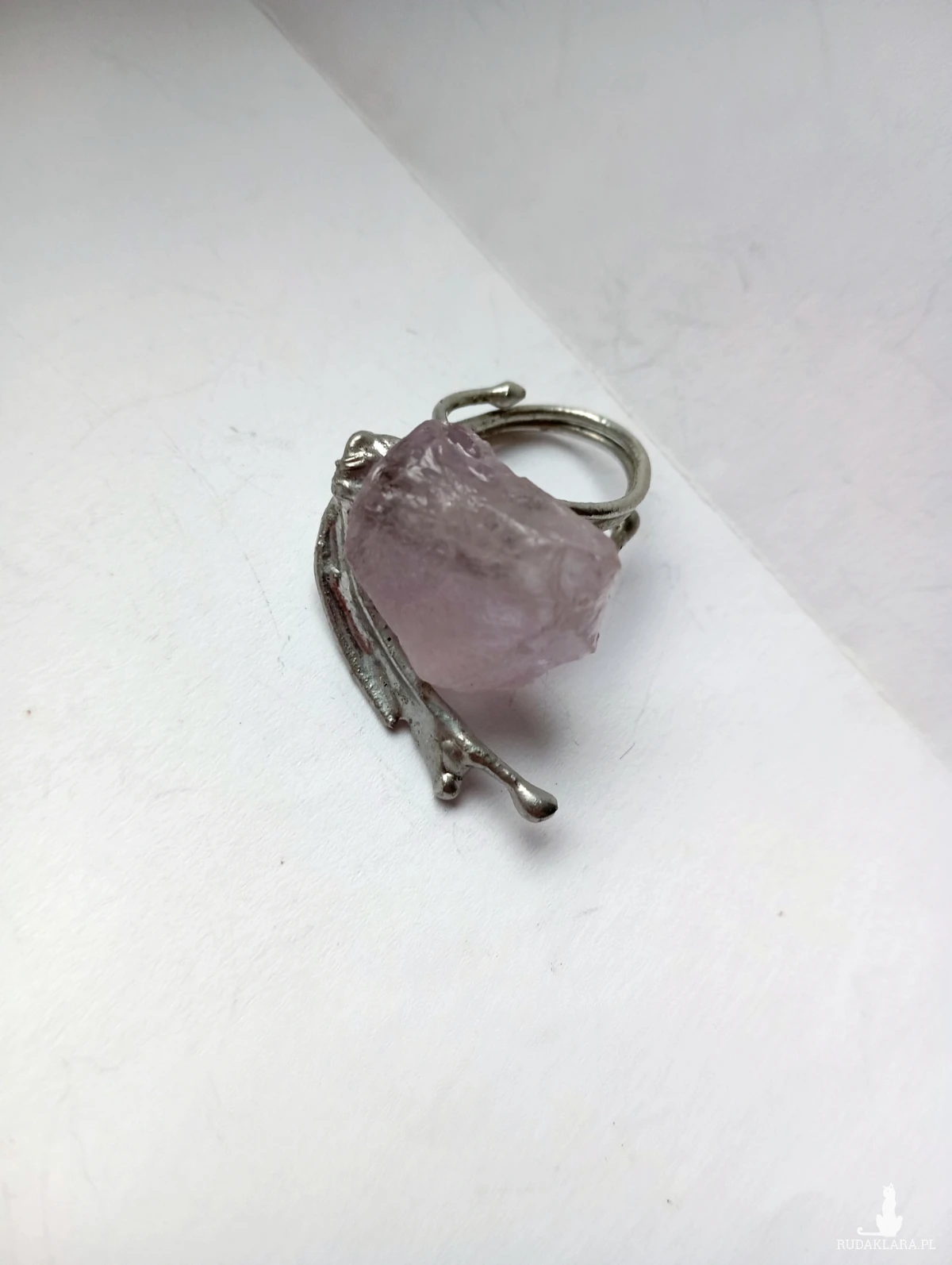 Pierścionek z fioletowym jadeitem, regulowany, pojedynczy