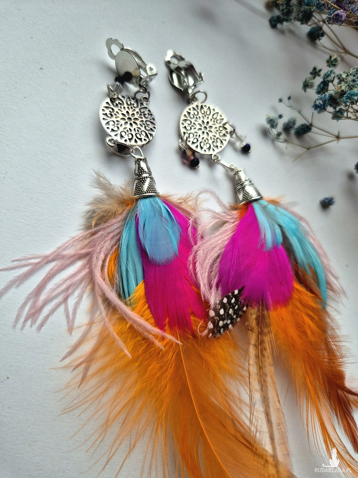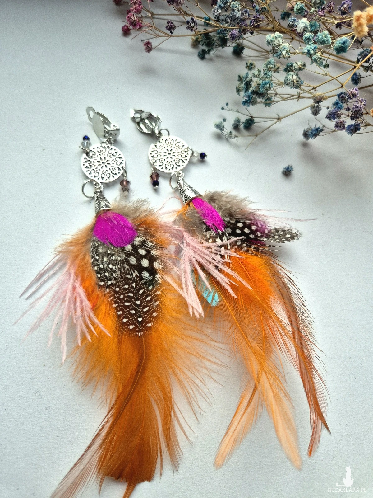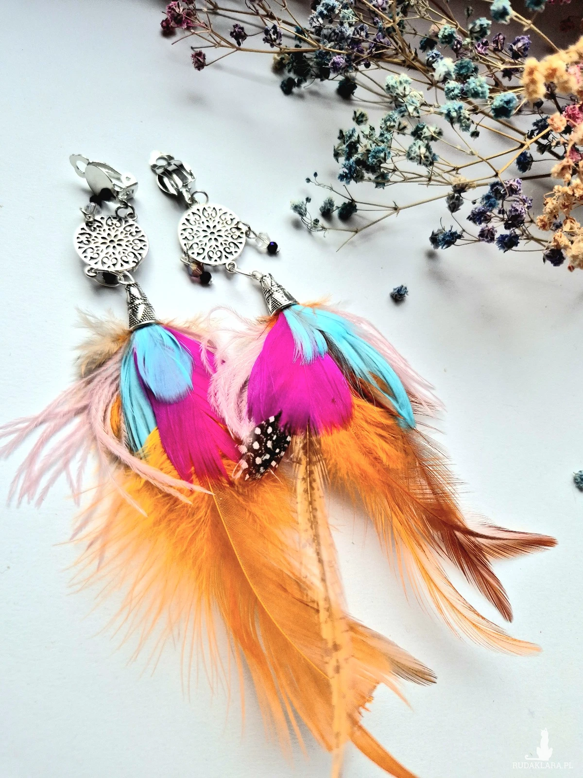 Klipsy rekodzielo kolorowe pióra lekkiej bardzo efektowne zrobione z miłością i pasją polecam