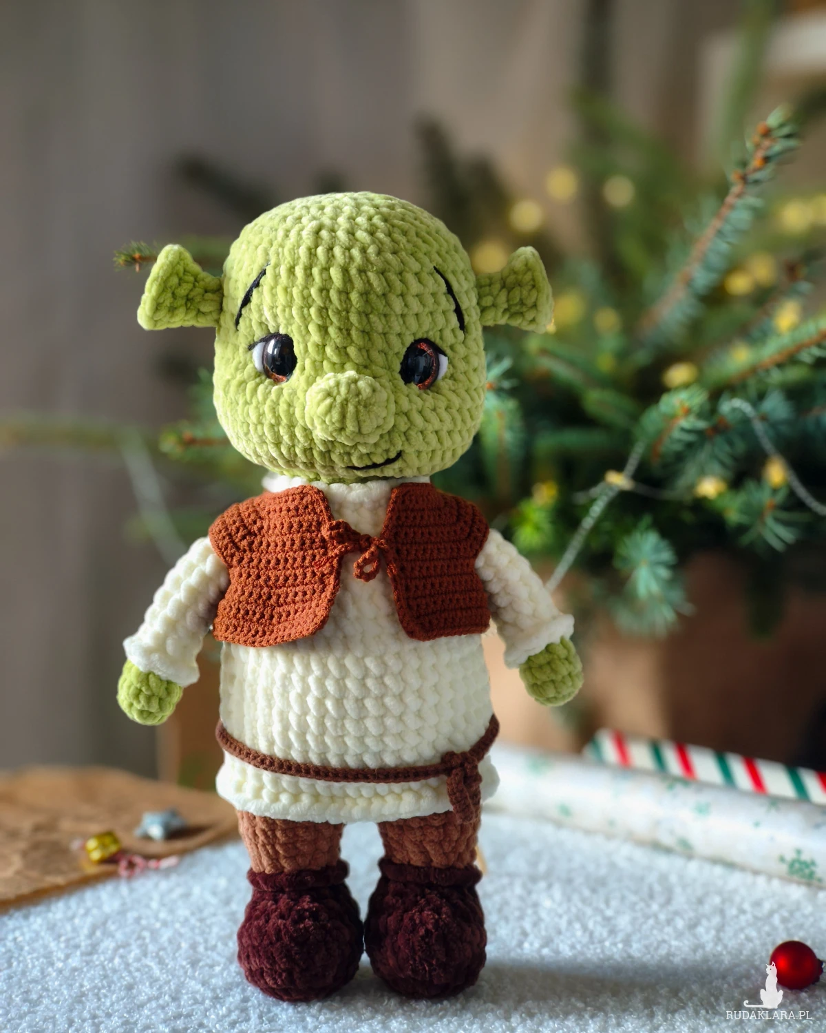 Pluszowy Shrek na szydełku będzie uroczym prezentem dla dziecka lub przyjaciół na święta, będzie cudowną ozdobą w pobliżu choinki lud dekoracją do pokoju dziecięcego!