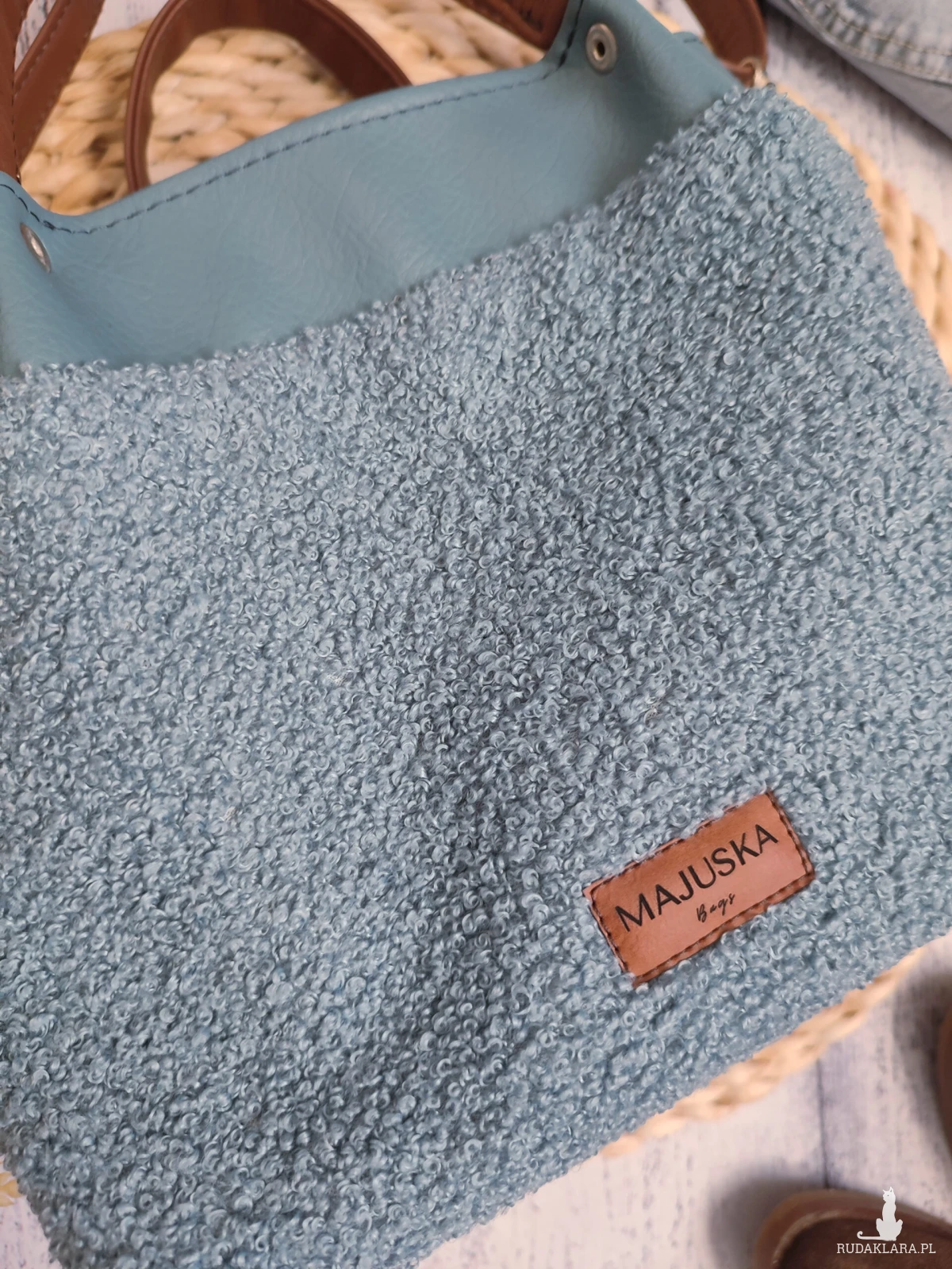 Idealny rozmiar na co dzień. Mała i zgrabna, a przy tym niezwykle pojemna. Pomieści wszystko co niezbędne w codziennym użytkowaniu. Uszyta z tkaniny boucle w kolorze brudnego niebieskiego w połączeniu z brązową ekoskórą. Podszewka z tkaniny wodoodpornej. Kieszonka z motywem ważki.