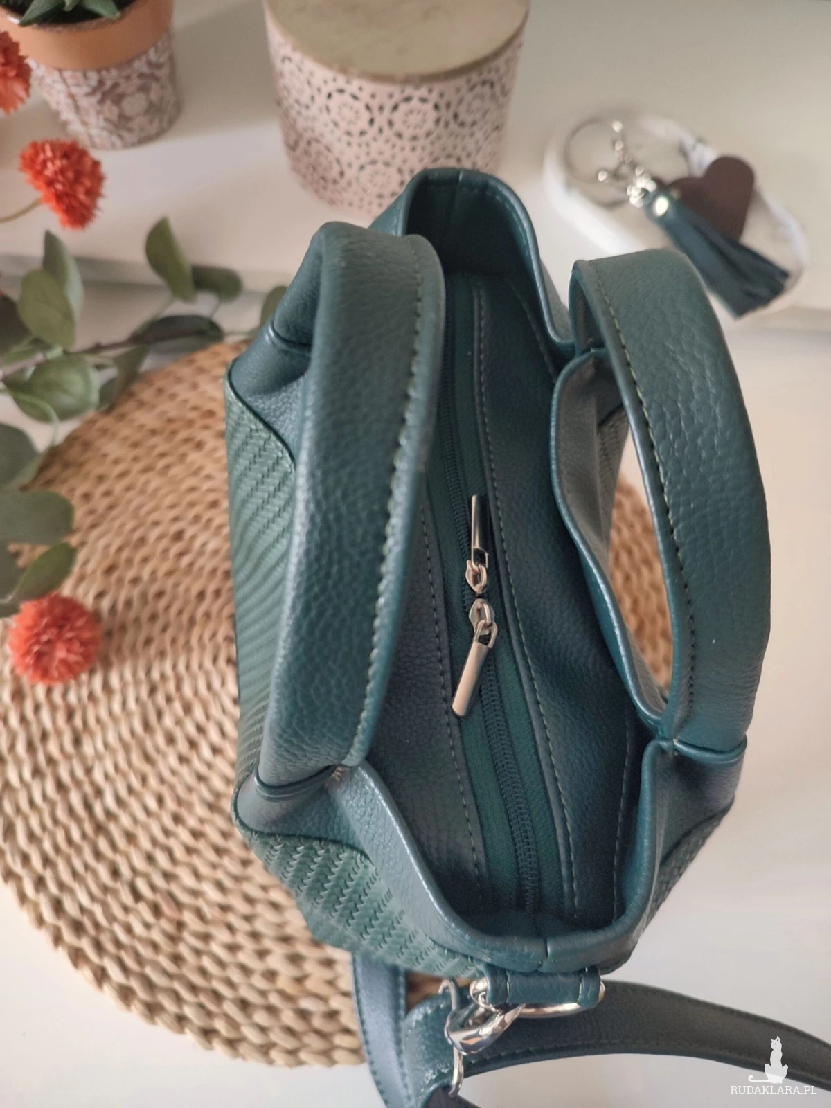 Torebka w klasycznym kształcie z delikatnym twistem. Dzięki swojej uniwersalnej formie pasuje zarówno do casualowych jak i bardziej eleganckich stylizacji. Wyposażona w uchwyty do trzymania w dłoni oraz długi odpinany i regulowany pasek. Wewnątrz kieszeń wsuwana oraz na zamek. Całość również zapinana na zamek.